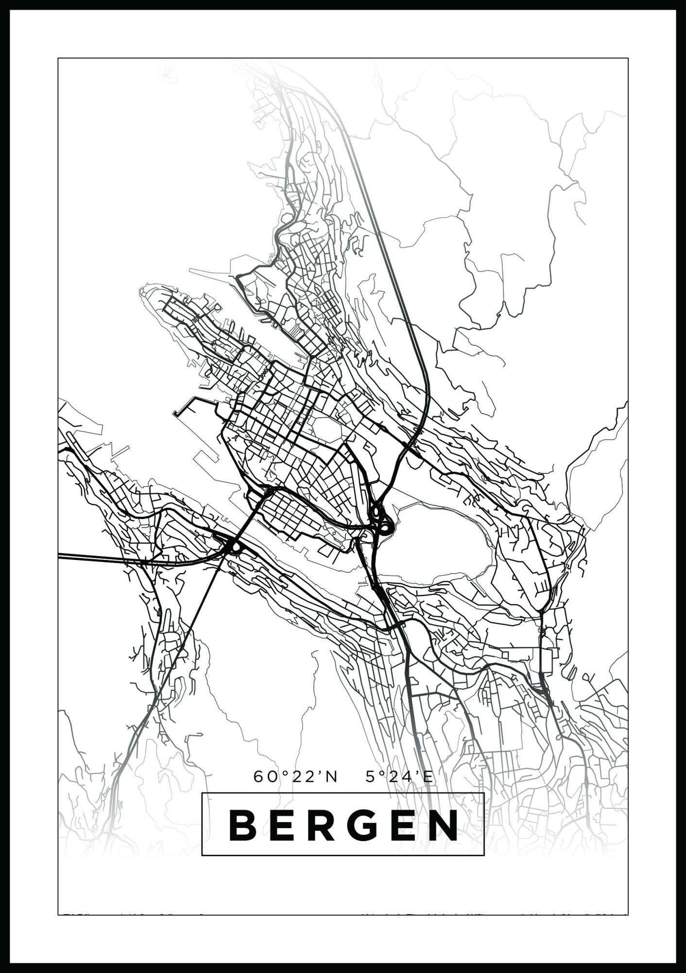 https://www.bgafotobutikk.no/Kart-Bergen-Hvit-Plakat-30x40-cm