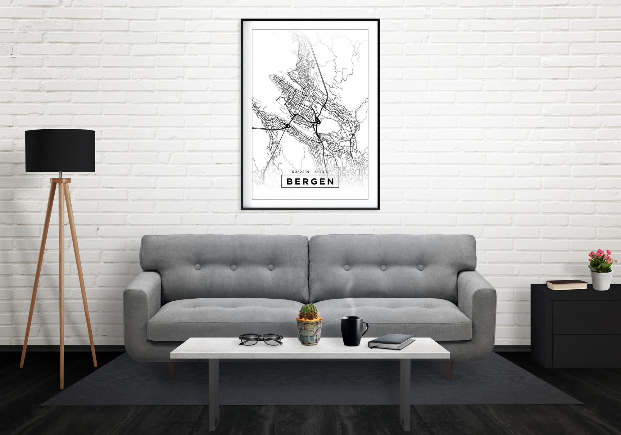 Pimp opp veggen med et lekkert Bergen-kart! Denne posteren har et fint og moderne design som gjør seg utmerket i en enkel slett ramme. Kompletter den med fine innrammede fotoer tatt i Bergen for en koselig helhet. Ettersom den finnes i flere ulike størrelser finnes det en for hver lommebok og hvert behov.