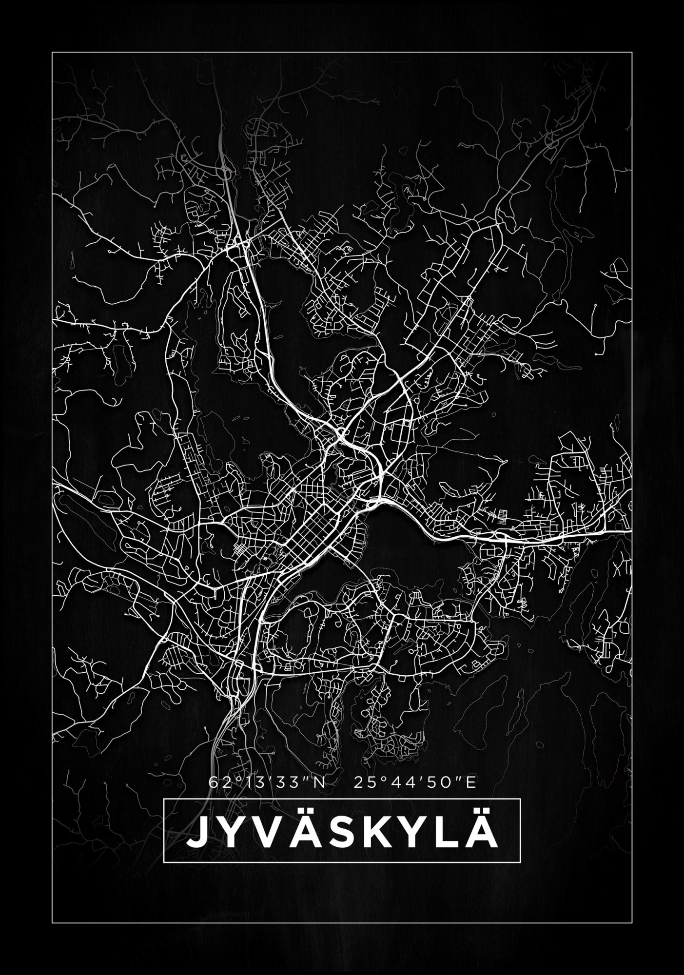 https://www.bgafotobutikk.no/Kart-Jyvaskyla-Svart-Plakat-50x70-cm