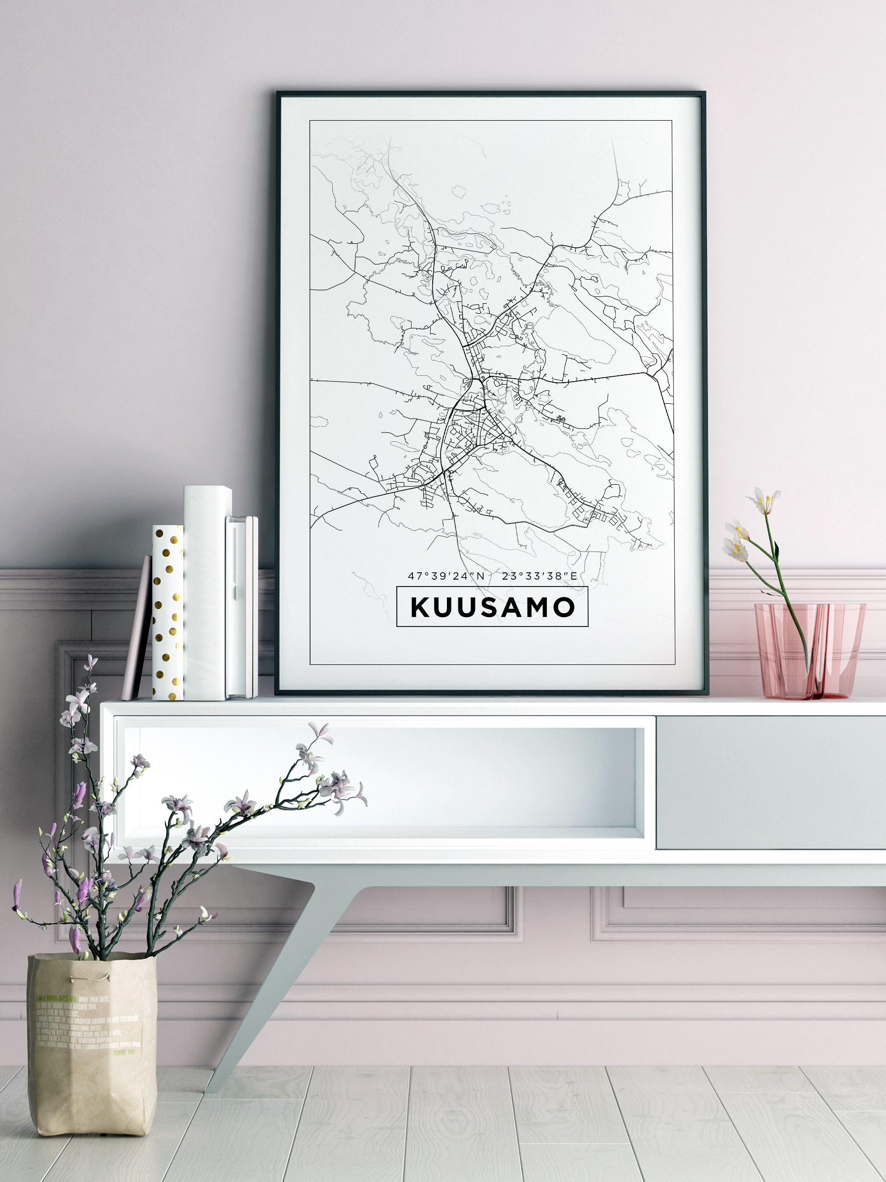 https://www.bgafotobutikk.no/Kart-Kuusamo-Hvit-Plakat-40x50-cm