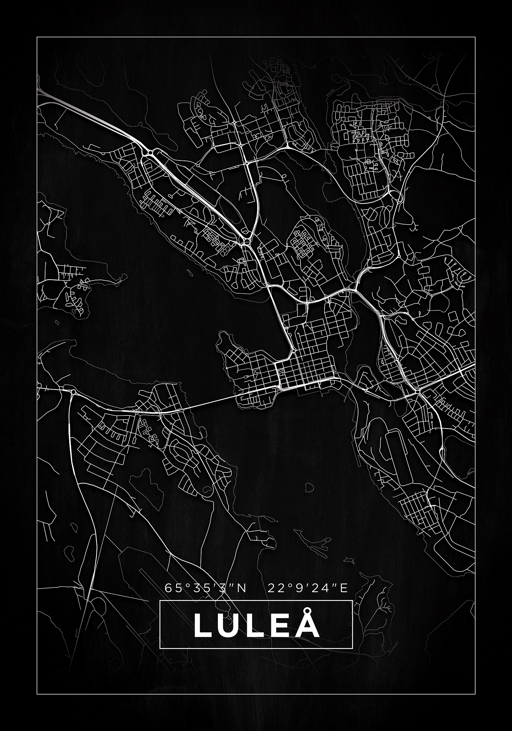 Kart - Luleå - Svart Plakat