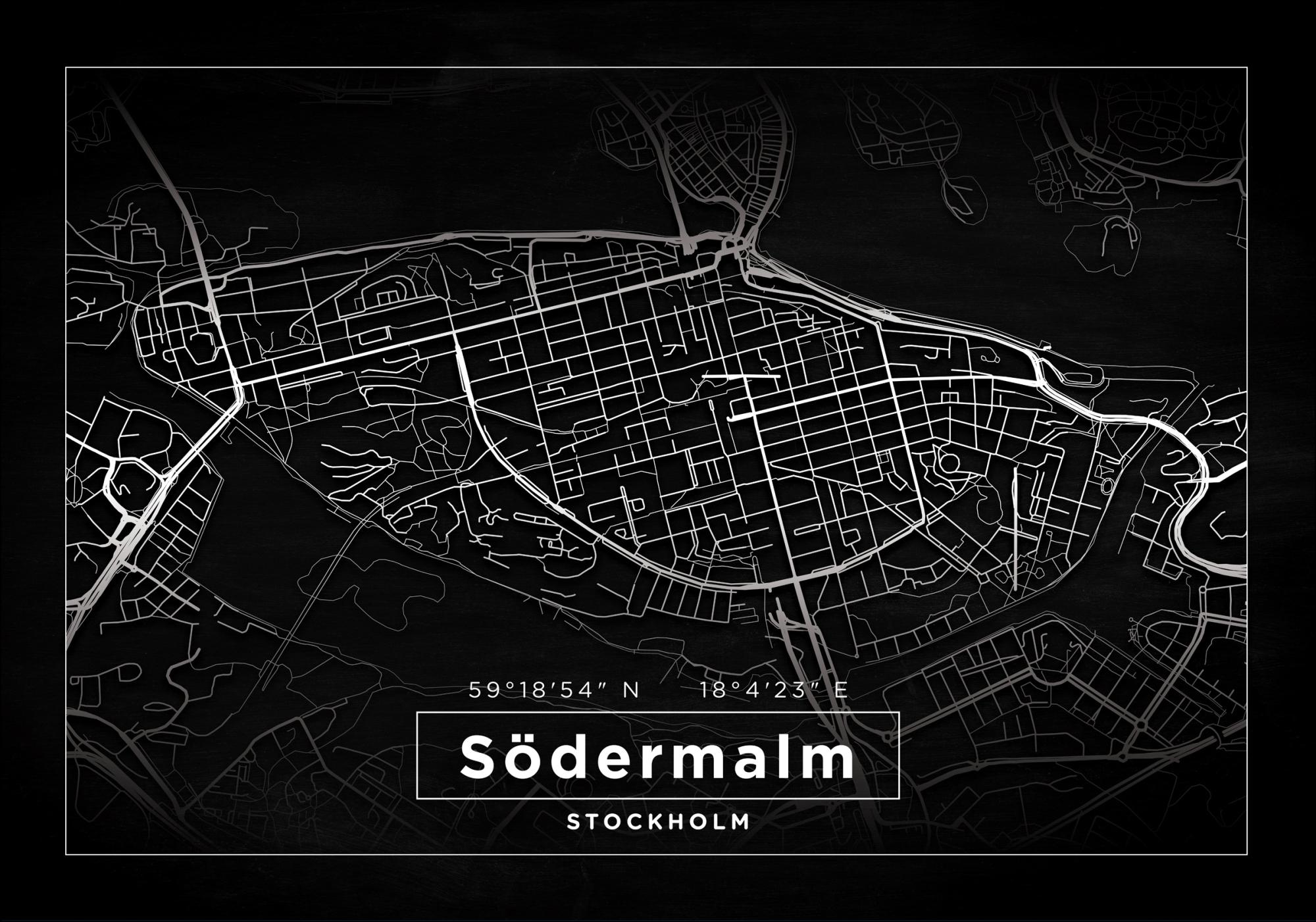 Kart - Södermalm - Svart Plakat