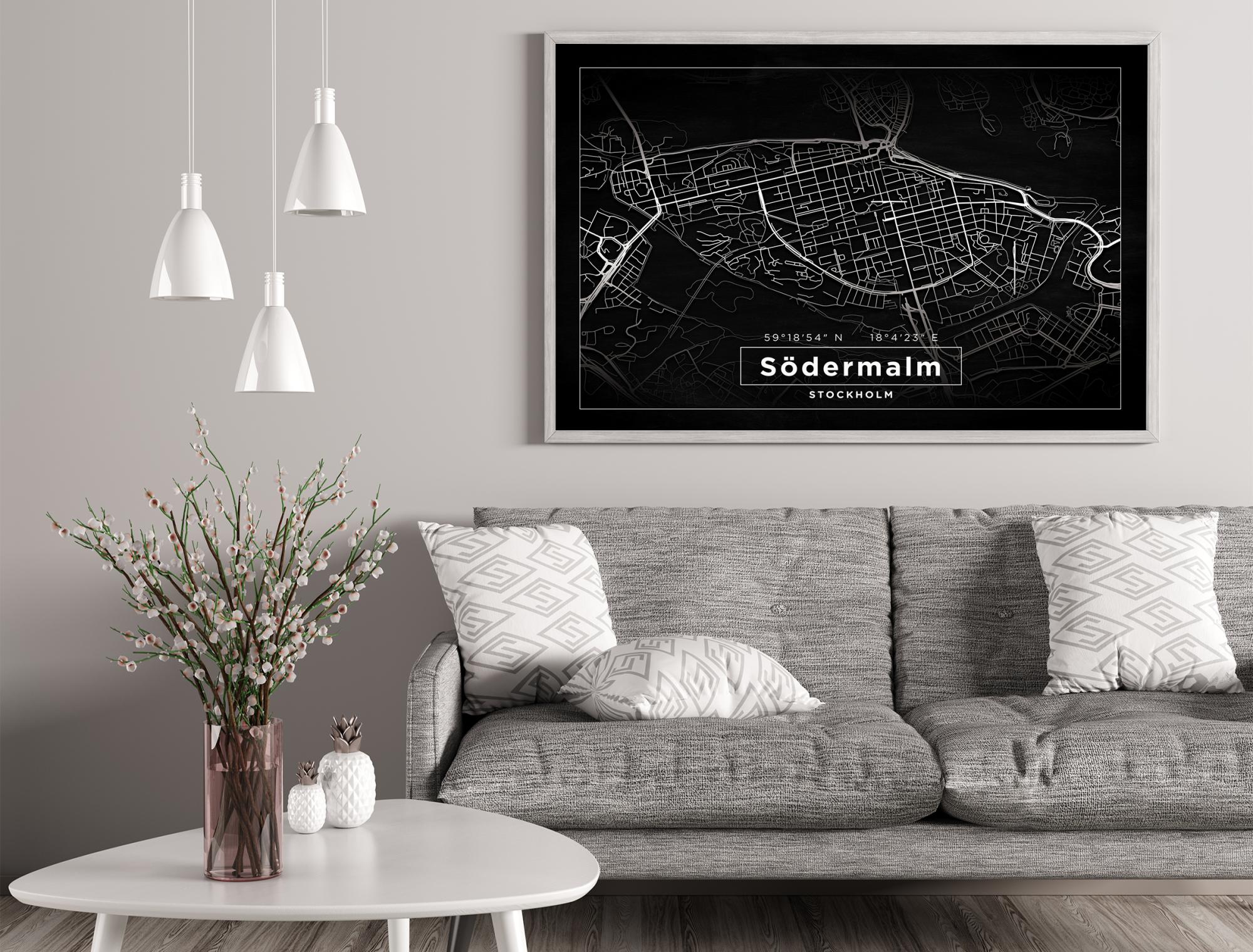 https://www.bgafotobutikk.no/Kart-Sodermalm-Svart-Plakat-30x40-cm