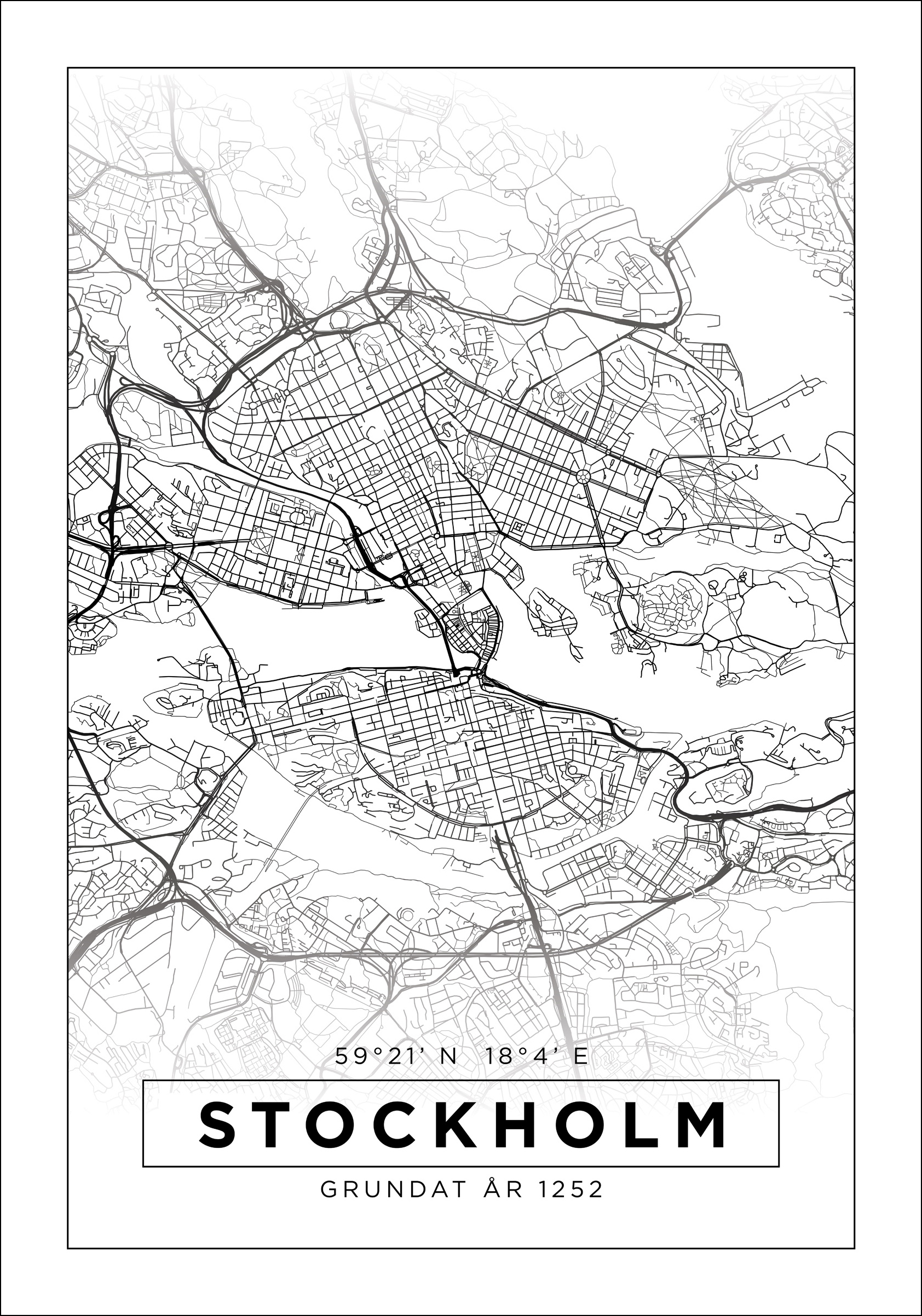 https://www.bgafotobutikk.no/Kart-Stockholm-Poster-Hvit-Plakat-30x40-cm
