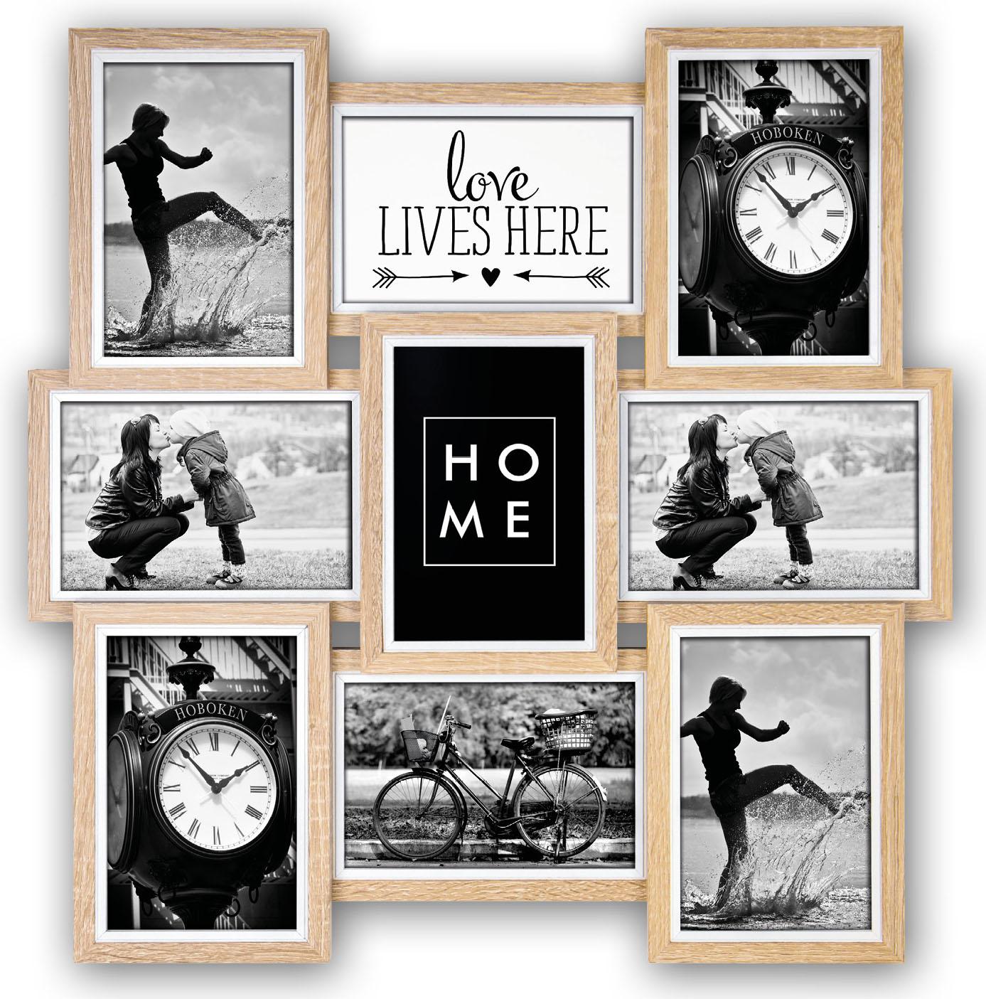 Med plass for 9 bilder i størrelsen 10x15 cm blir denne fine collgerammen i tre et perfekt måte å vise fram alt fra familiemeldemmer som er vert å vise.