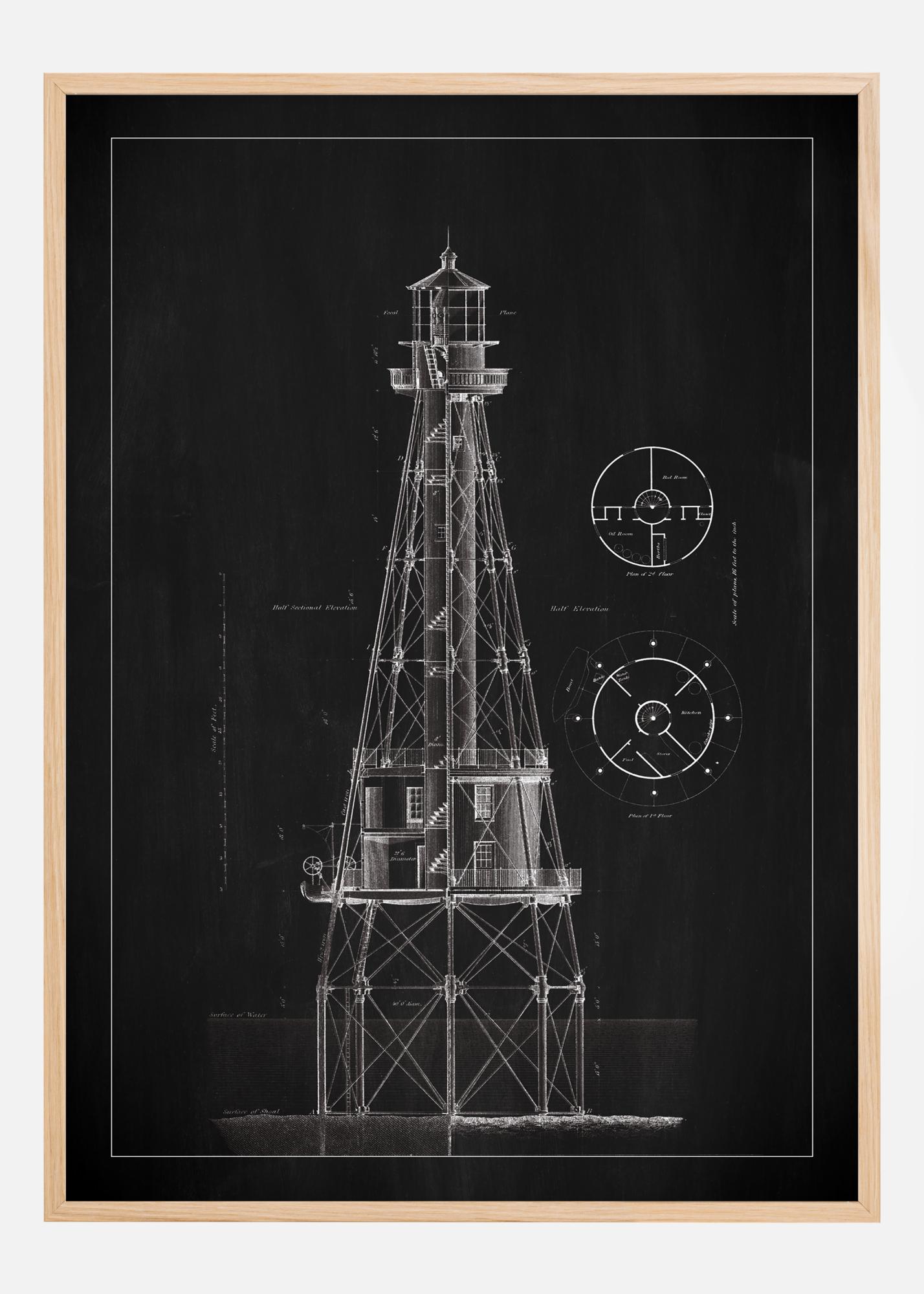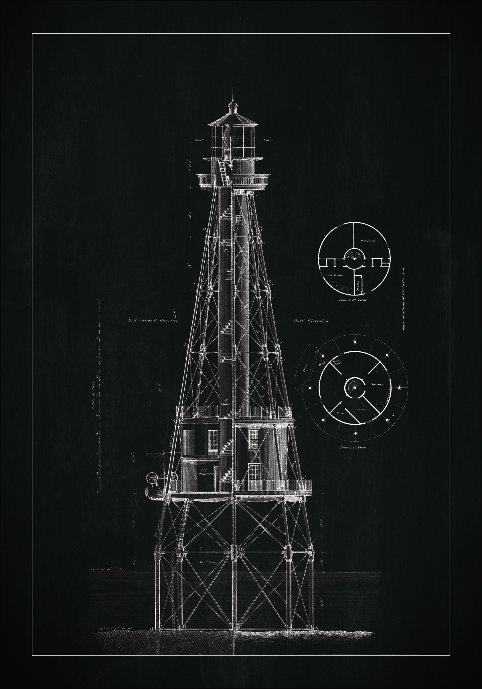 Har du en forkjærlighet til innredningskomponenter som tilfører historie har vi her den perfekte plakaten! Posteren minner om en svart krittavle med en nøye utført arkitetkttegning på. Tegningen viser det vakre jernfyret Ship Shoal Light som tårner seg opp ved Louisianas kyst. Fyret ble bygget og tatt i bruk i 1859 og den har overlevd mange orkaner, men med tiden har den begynt å helle. Rundt 1866 oppdaget man at fyrvaktene ble syke og etter en utredning oppdaget man giftig maling i fyrets vanntank. I 1965 slukket lampen for alltid men fyret står fortsatt der som et fascinerende minnemerke.