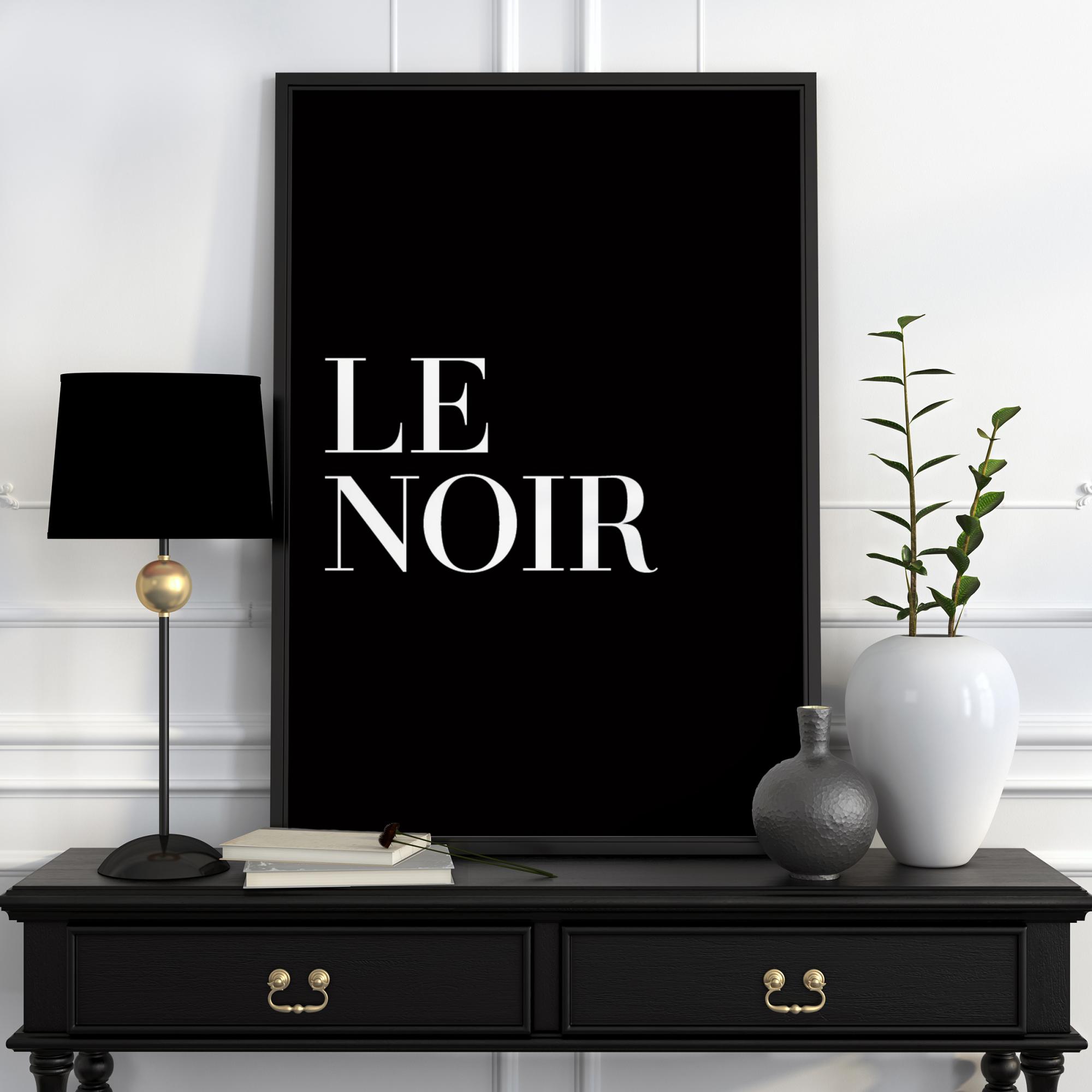 En enkel og minimalistisk tekstposter med teksten "Le Noir", Det svarte, i store hvite versaler mot en svart bakgrunn. En poster som passer perfekt å ha på en større bildevegg, kanskje i kombinasjon med postern "Le Blanc", Den hvite? Kompletter gjerne med noe fra vårt store sortiment av rammer.
