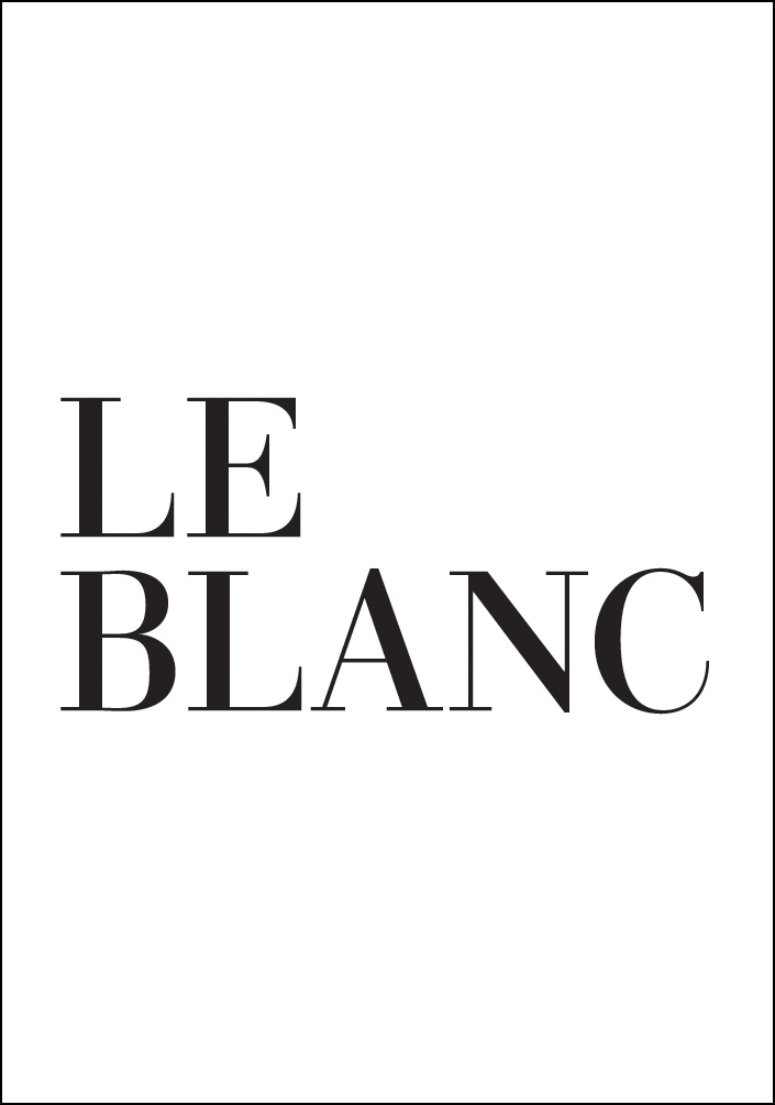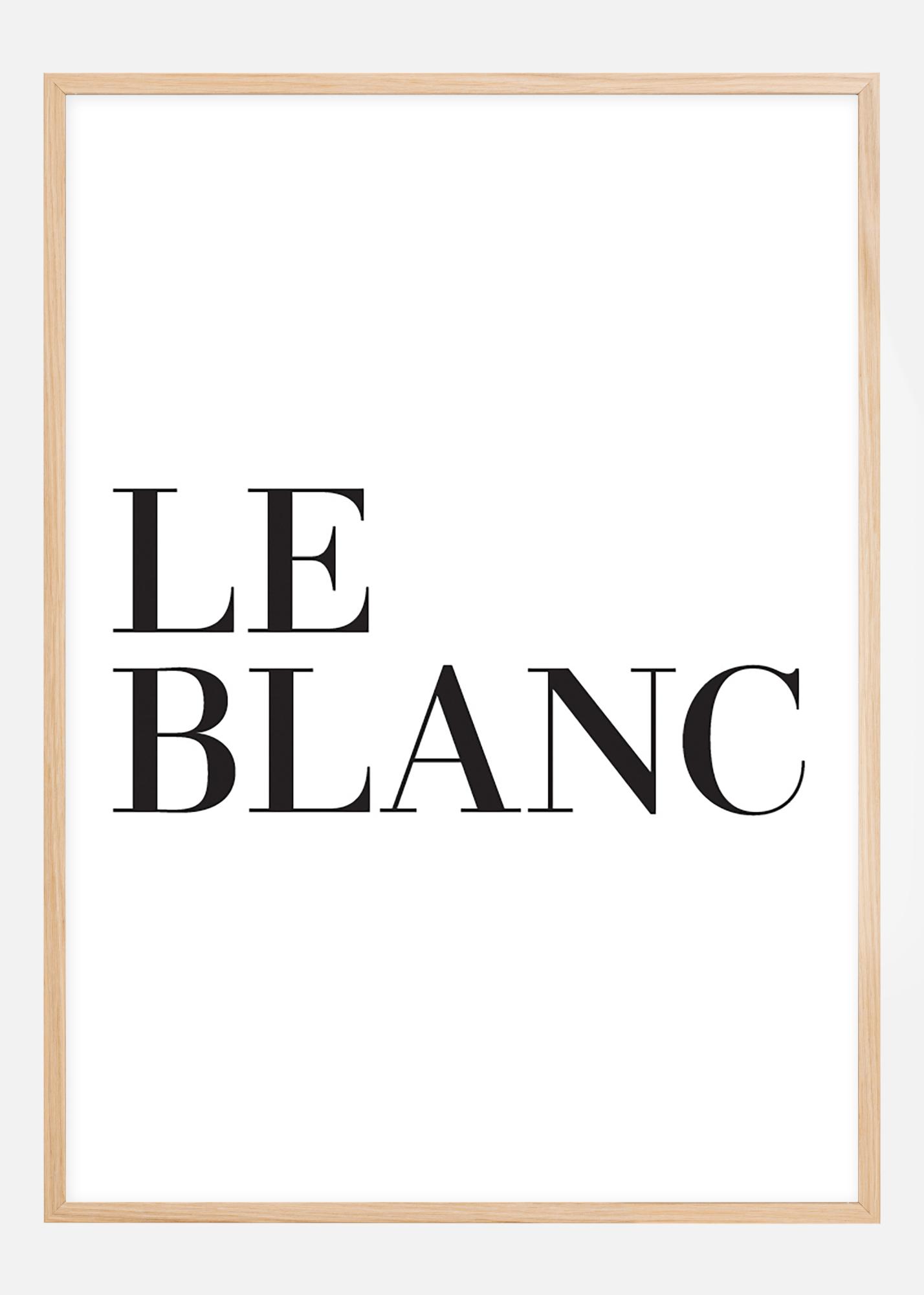 En enkel og stilren tekstposter med budskapet "Le blanc", Det hvite. En poster som passer utmerket i det moderne og minimalistiske hjemmet og som er perfekt å ha som en del av et større kollasj.