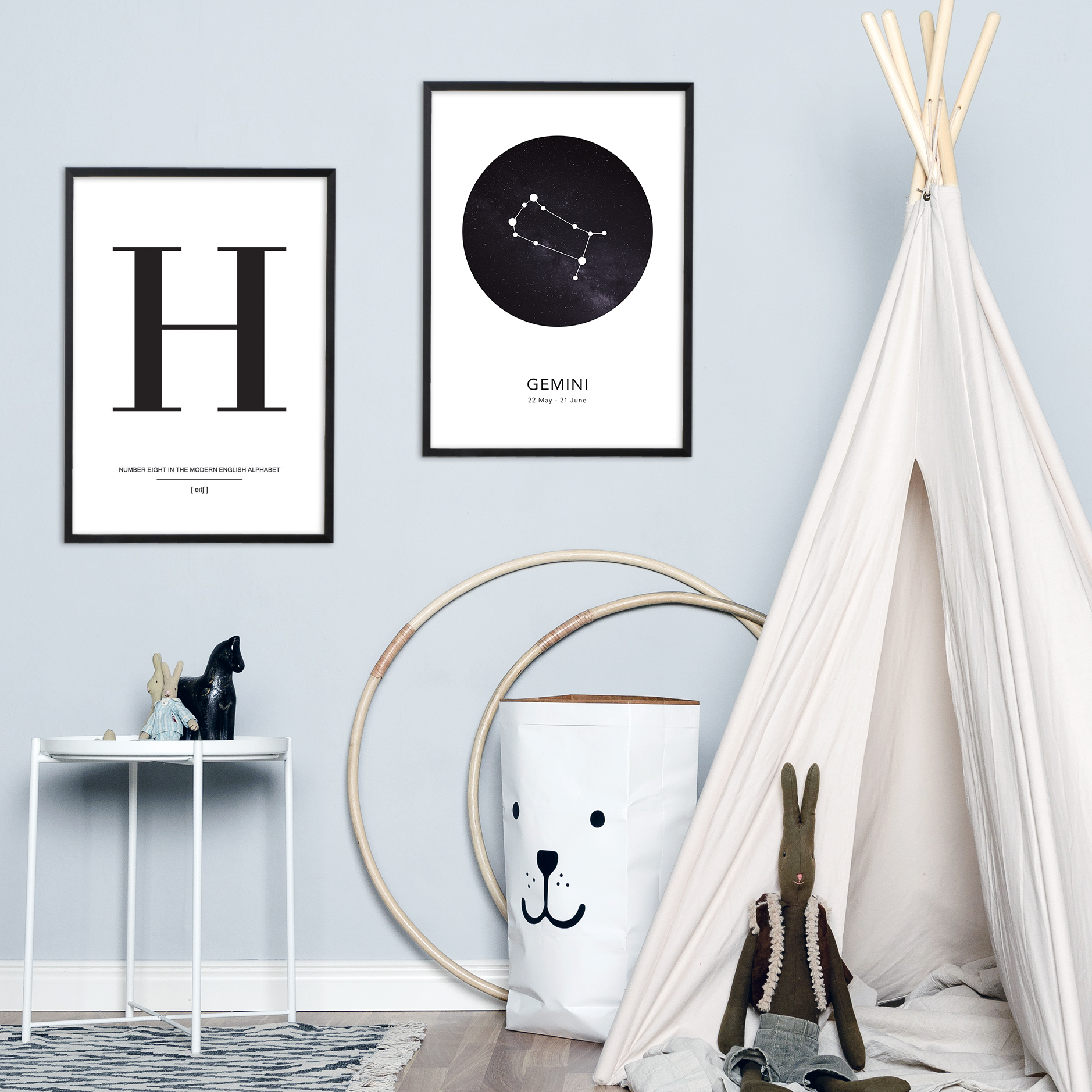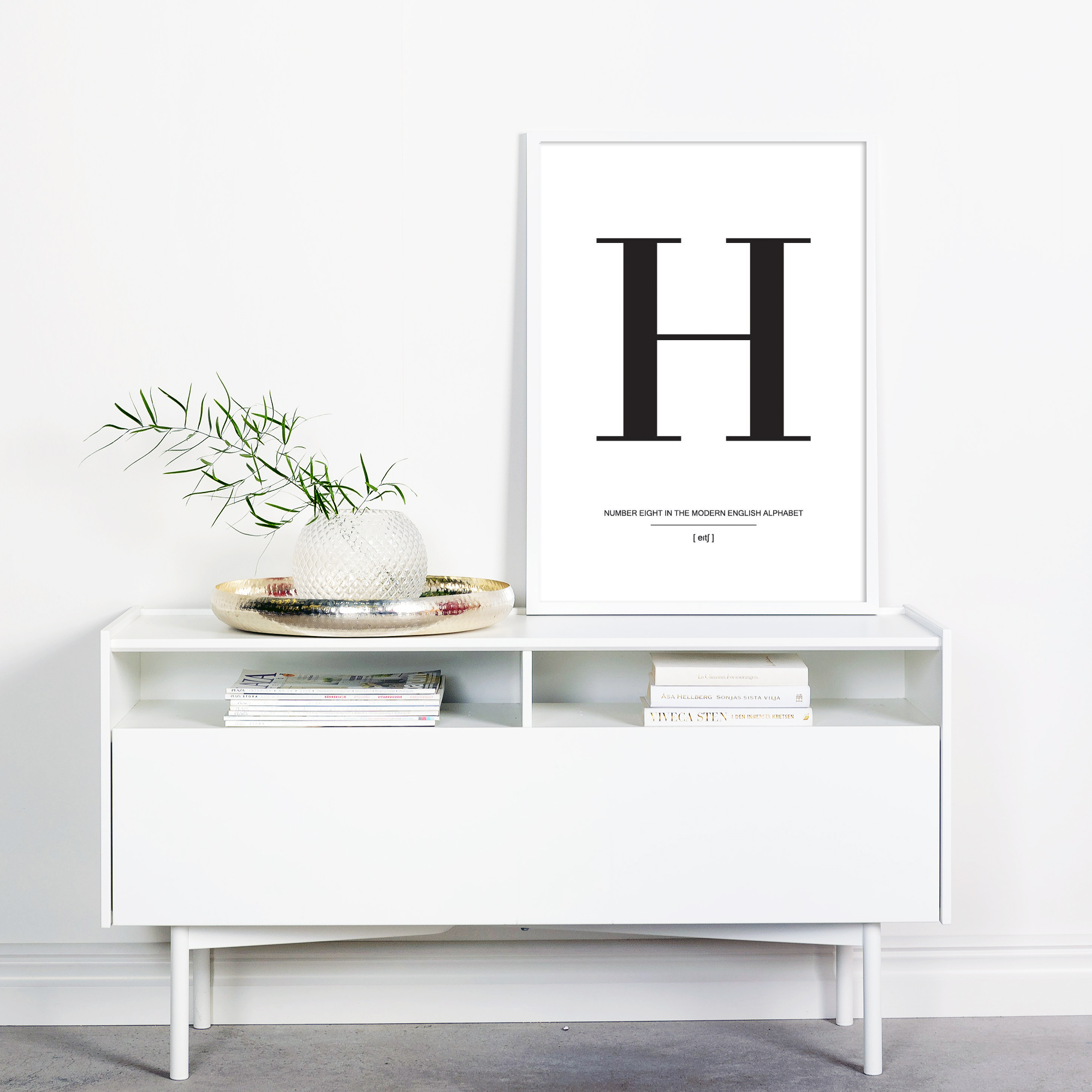 I enkelheten finnes det vakre, og det beviser virkelig denne stilrene plakaten med bokstaven H i svart mot en hvit bakgrunn. Plakaten har en stilig typografi og bør kompletteres med andre bokstavsposters fra samme serie for å skape en trendy og vakker bildevegg. Velg dine favorittposters med bokstaver på og velg blant vårt store utvalg av kvalitetsrammer, så er det bare å la fantasien flyte hjemme på veggene.