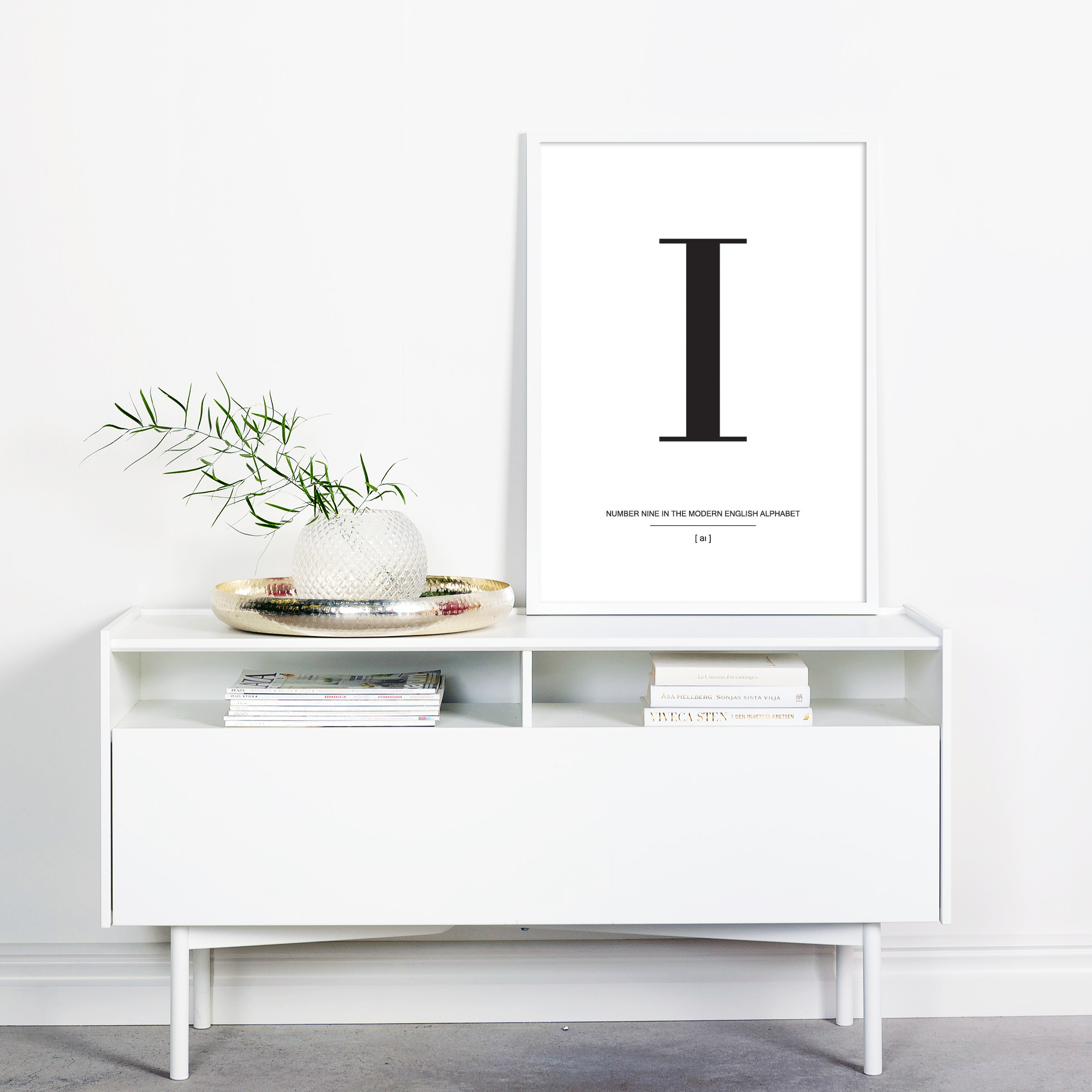 I enkelheten finnes det vakre, og dette bevises virkelig av denne stilrene plakaten med bokstaven I i svart mot en hvit bakgrunn. Plakaten har en stilig typografi og bør kompletteres med andre bokstavsposters fra samme serie for å skape en trendy og vakker bildevegg. Velg dine favorittposters med bokstaver på og velg blant vårt store utvalg av kvalitetsrammer, så er det bare å la fantasien flyte hjemme på veggene.