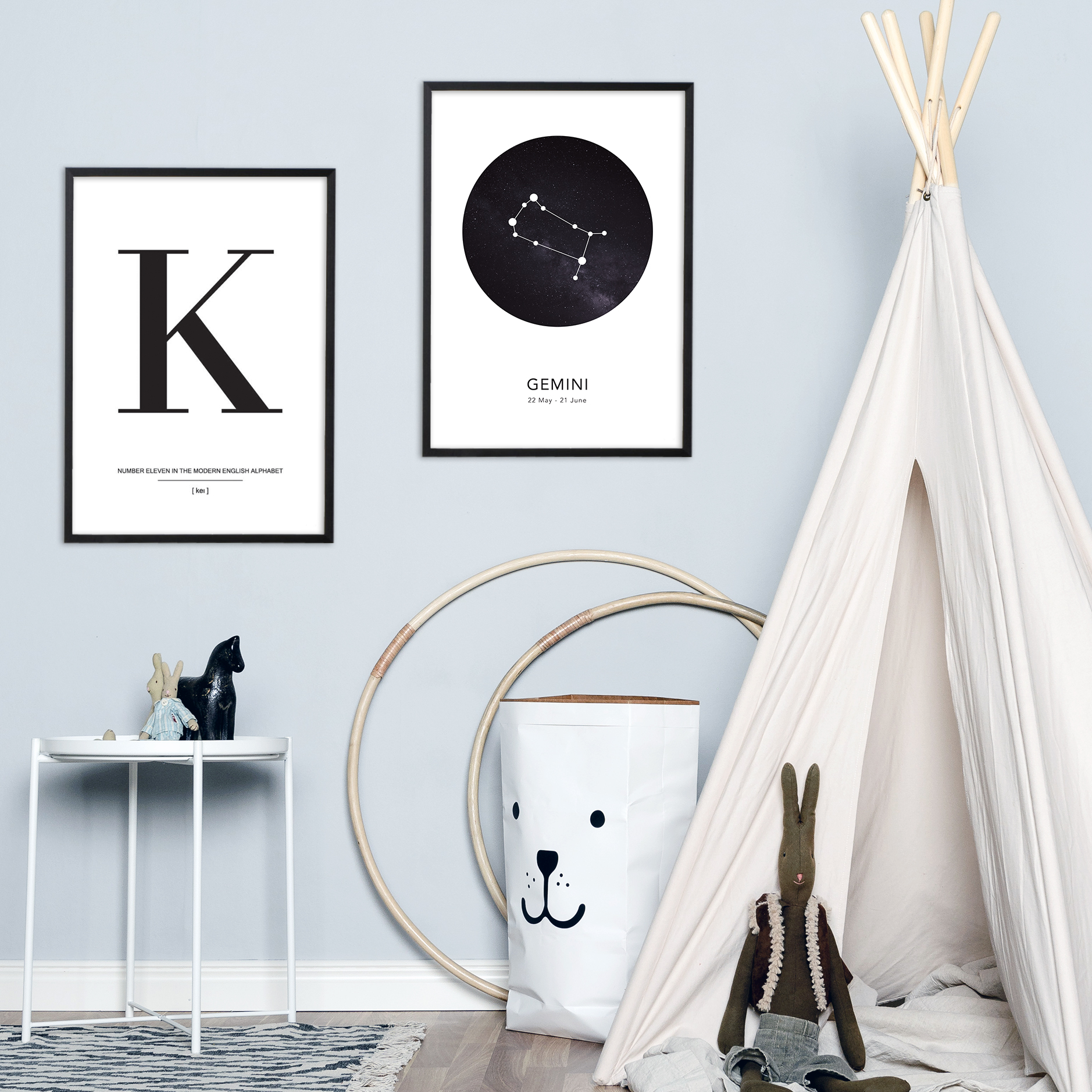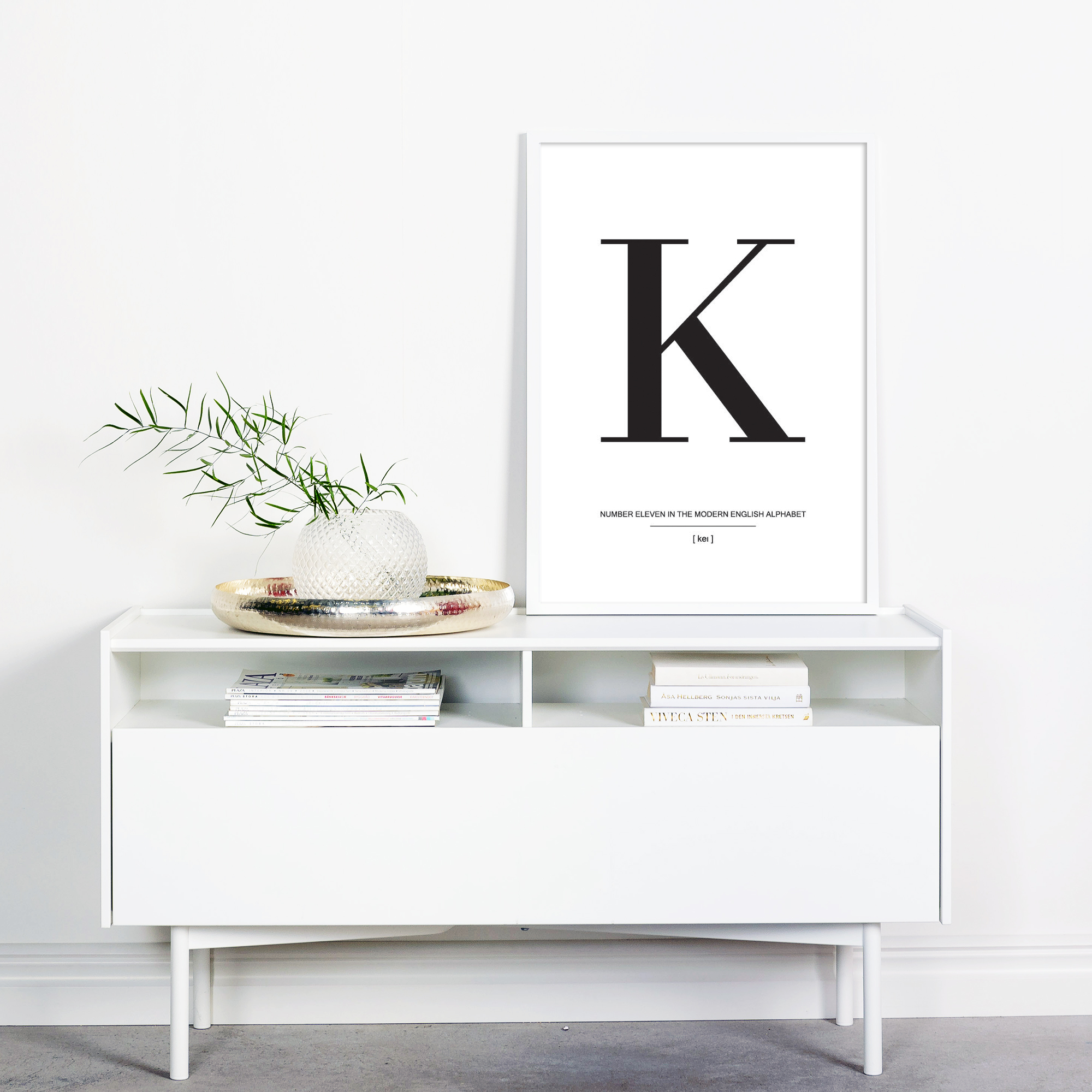 I enkelheten ligger det vakre, og det beviser virkelig denne stilrene plakaten med bokstaven K i svart mot en hvit bakgrunn. Plakaten har en stilig typografi og bør kompletteres med andre bokstavposters fra samme serie for å skape en trendy og vakker bildevegg. Velg dine favorittposters med bokstaver på og velg blant vårt store utvalg av kvalitetsrammer, så er det bare å la fantasien flyte hjemme på veggene.