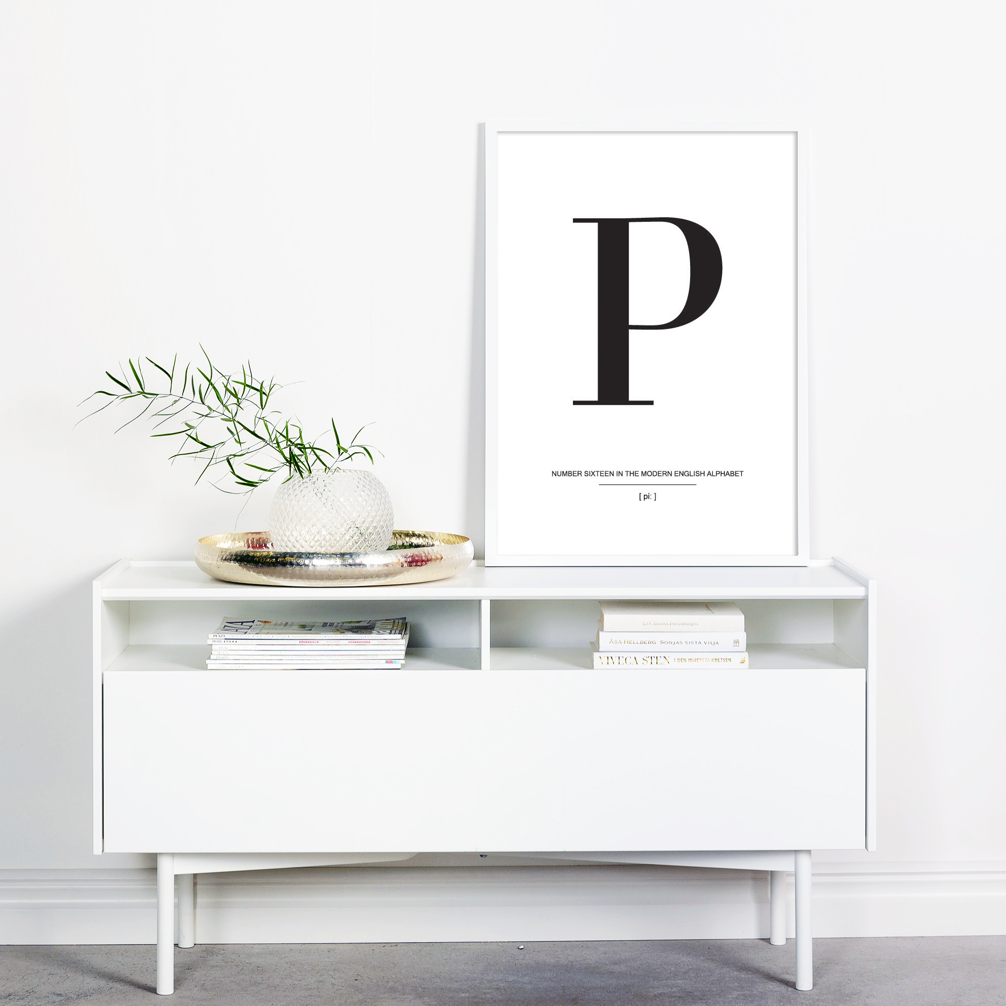I enkelheten finnes det vakre, og det beviser virkelig denne stilrene plakaten med bokstaven P i svart mot en hvit bakgrunn. Plakaten har en stilig typografi og bør kompletteres med andre bokstavsposters fra samme serie for å skape en trendy og vakker bildevegg. Velg dine favorittposters med bokstaver på og velg blant vårt store utvalg av kvalitetsrammer, så er det bare å la fantasien flyte hjemme på veggene.