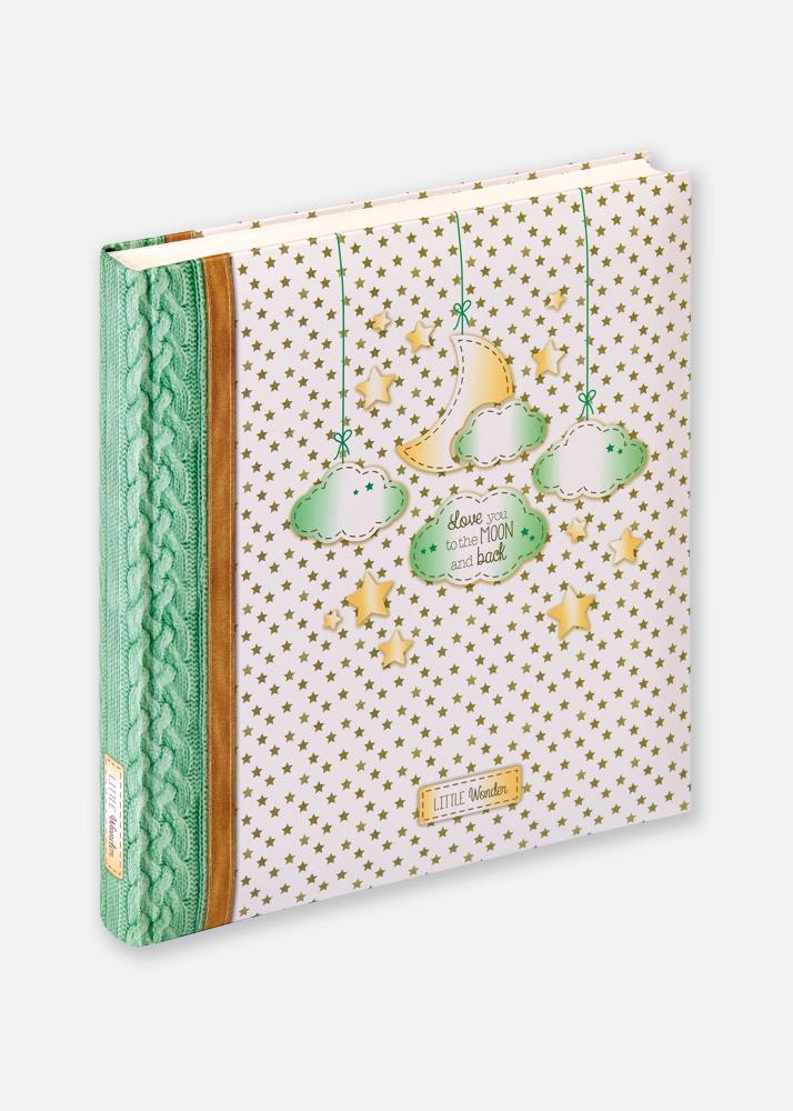 Dette fotoalbumet har en hvit forside med grønn flettemønstret kant og et himmelsk trykk med stjerner i forskjellige størrelser, skyer og en måne. Det hele bindes sammen av teksten «Love you to the moon and back». Albumets første side er dekorert i samme stil og har plass til tekst.