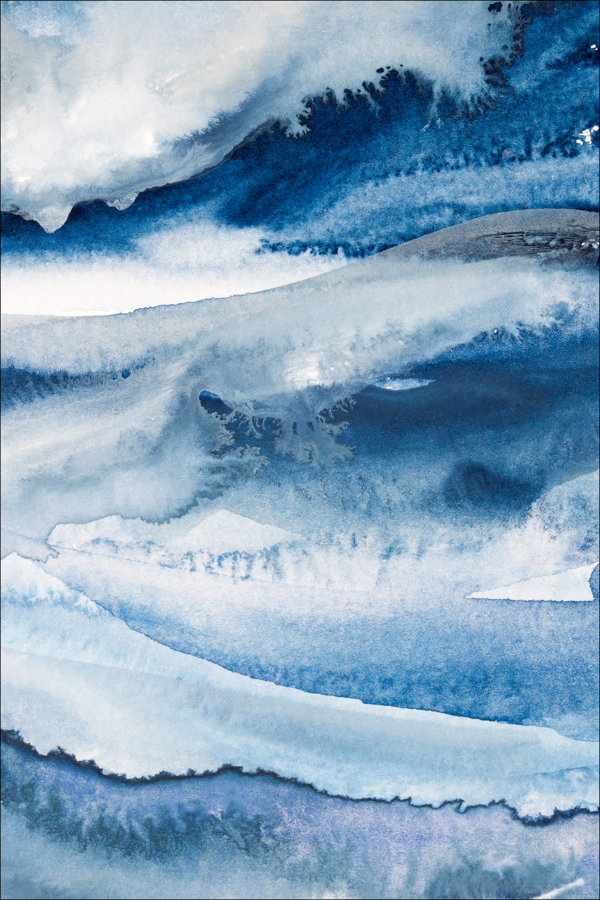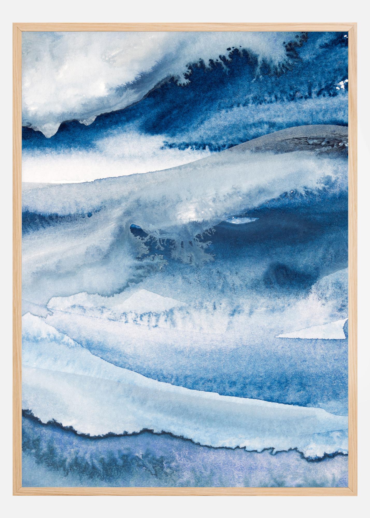 En vakker plakat med havbølger i full handling. Det hvite skummet dominerer det blå vannet der det bæres bort av havvinden. De forskjellige nyansene av blått skaper en følelse av kulde. Føl friskheten i luften når du henger denne vakre plakaten i hjemmet ditt.
