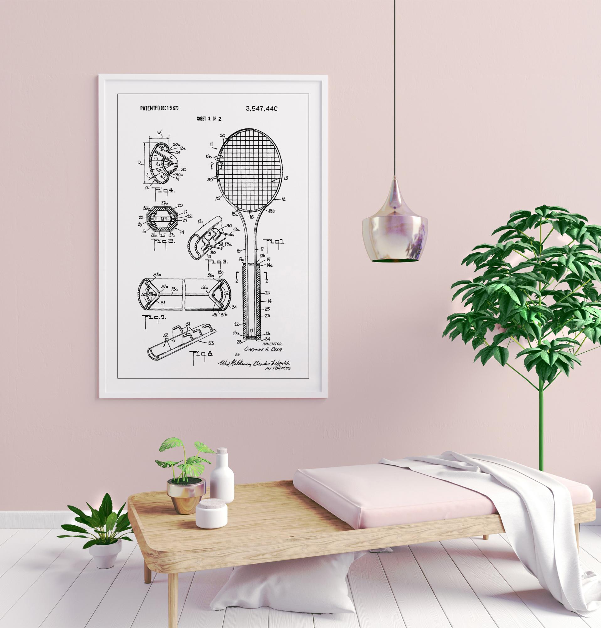 Plakaten, som viser oppfinnelsens skjønnhet i en minimalistisk svart-hvitt stil, er ikke bare et estetisk tillegg til ethvert rom, men også en inspirerende kilde for de som verdsetter sammenflettingen av teknologi og sport. Perfekt for kontoret, hjemmet eller til og med et profesjonelt idrettsmiljø, tilbyr denne patentplakaten et unikt innblikk i den kreative prosessen bak en av sportsverdenens mest ikoniske redskaper.