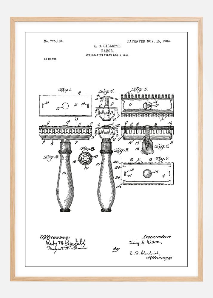 Patenttegning - Barberhøvel - Hvit Plakat