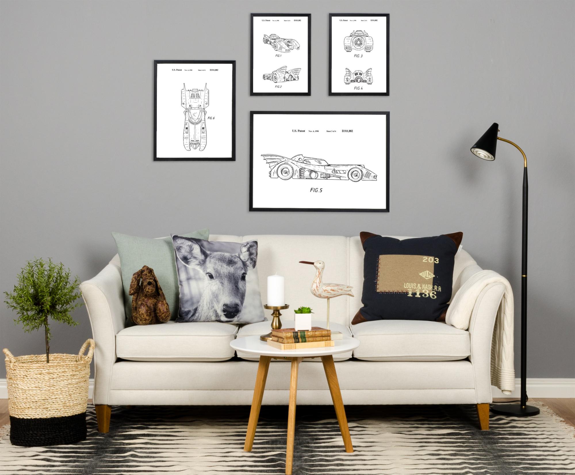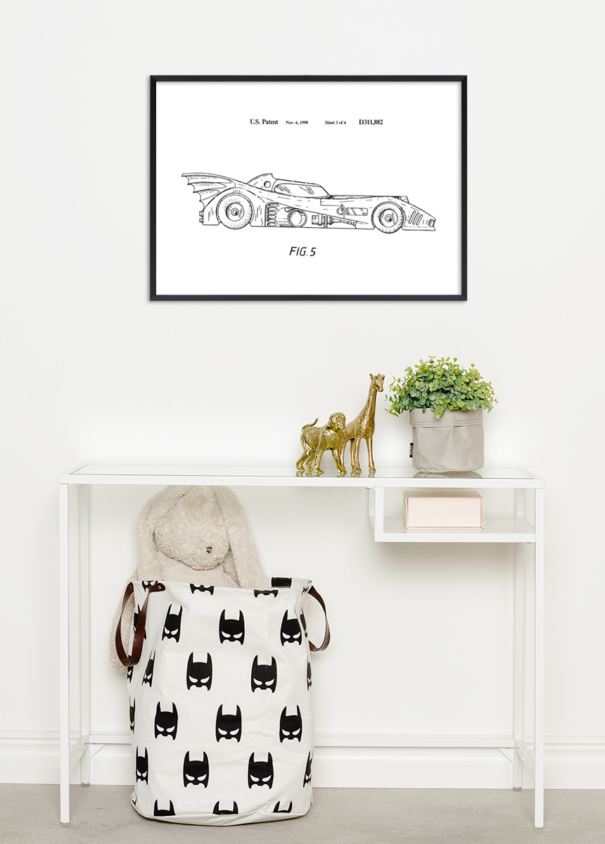 Denne fascinerende patentplakaten fremkaller en følelse av både nostalgi og fremtidstro. Den avbilder patenttegningen av et ikonisk design av Batman bilen, fastsatt i det amerikanske patentet D311,882 fra 6. november 1990. Den detaljrike tegningen er ikke bare en anerkjennelse av teknisk dyktighet, men også et kunstverk som vekker beundring. Med sine distinkte linjer og gjennomtenkte detaljer blir denne patentplakaten et utmerket samtaleemne og en kilde til inspirasjon i alle miljøer, fra moderne kontorer til retroinspirerte stuer.