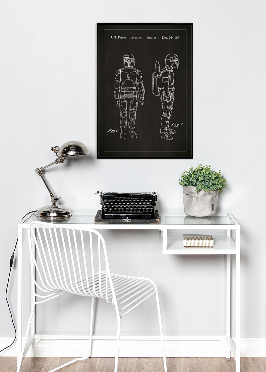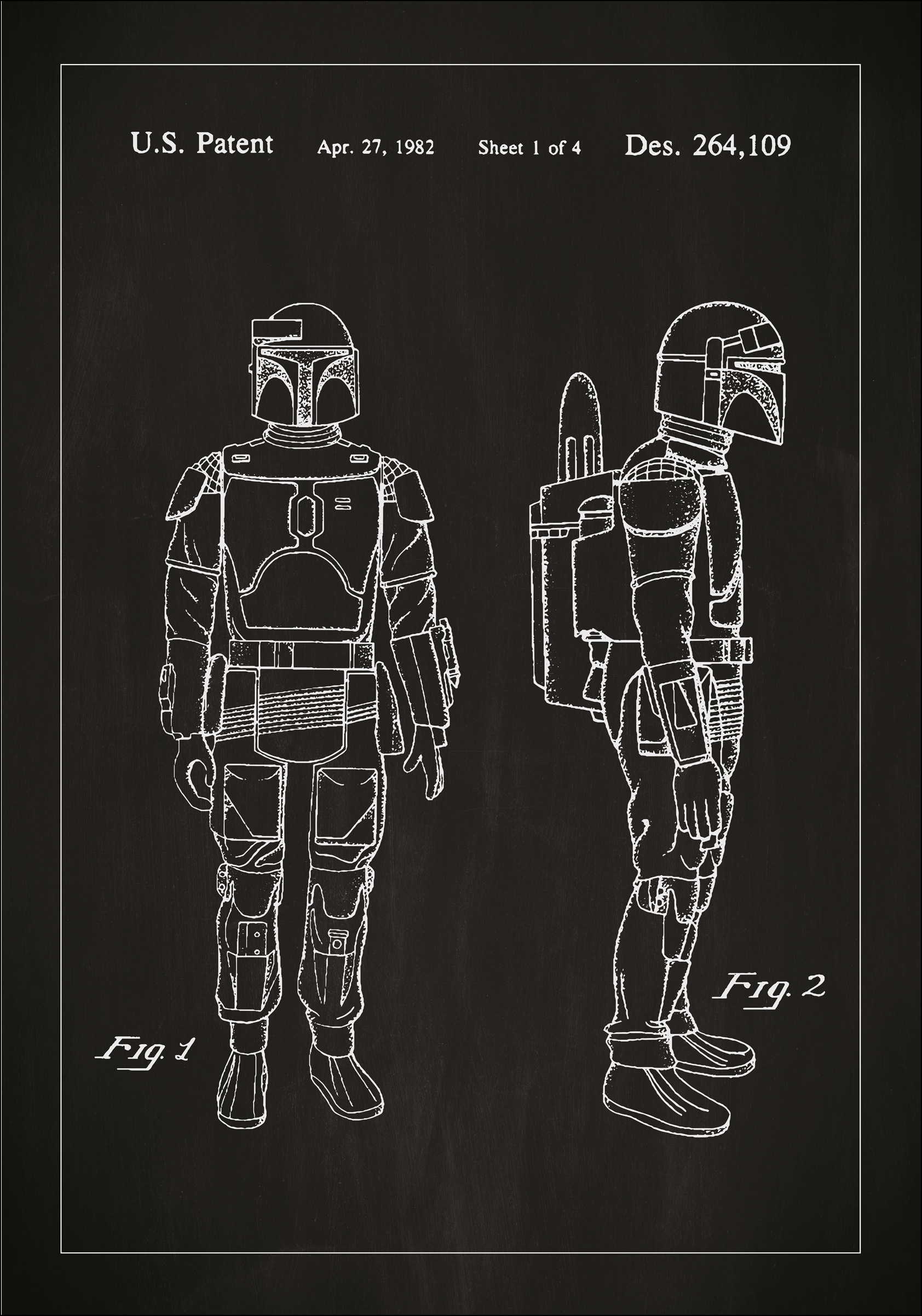 Oppdag den nostalgiske sjarmen og innovative designen med vår eksklusive patentplakat som avbilder en klassisk rustningsdrakt til Boba Fett fra Star Wars. Denne detaljerte patenttegningen, opprinnelig innlevert til det amerikanske patentverket, representerer en fascinerende del av designhistorien. Perfekt for teknikkentusiaster og samlere, fungerer denne patentplakaten som en stilfull påminnelse om menneskehetens kreative streben og tekniske fremskritt.
