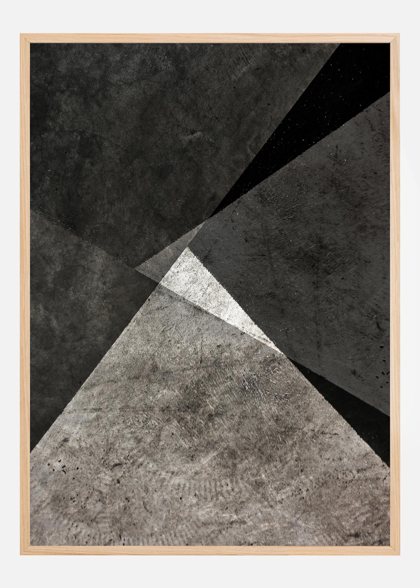 En mystisk plakat med svarte og hvite trekantede former plassert på gulvet. Med det naturlige lyset som skinner på flisene, er det uklart om den mindre trekanten er hvit eller er bare opplyst. Denne flotte plakaten bør henge på en vanlig vegg.