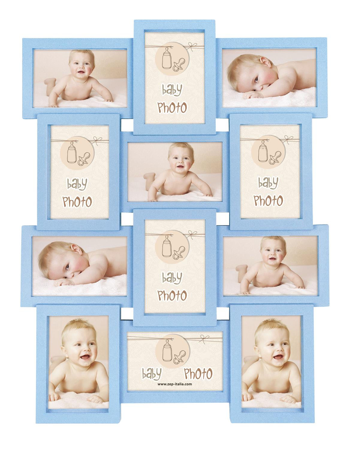 Sett 12 av de søteste, morsomste og mest fantastiske bildene på mini i denne fine collagerammen! Rammen er laget av lyseblå plast med glass over bildeåpningene og veggfeste på baksiden. Hvorfor ikke velge ut 1 bilder fra hver måned det første leveåret?