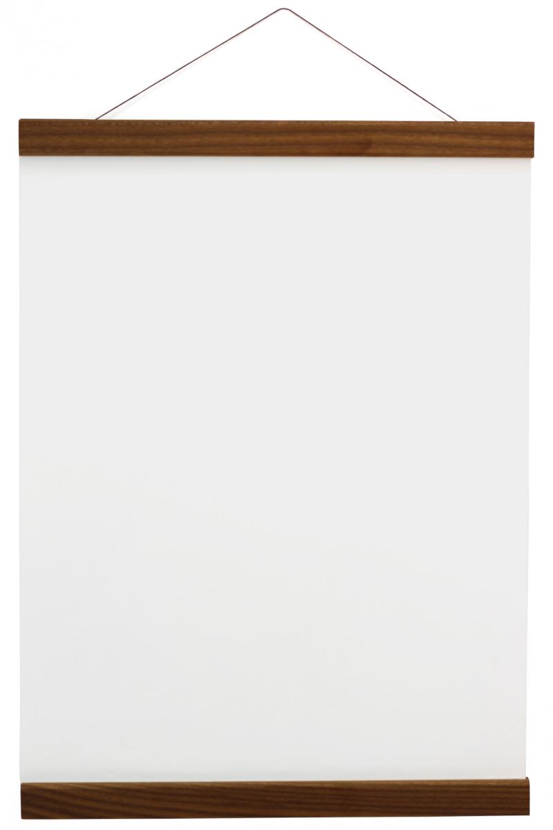 Du monterer enkelt plakaten mellom plakathengerens to lister ved hjelp av tilhørende magneter.