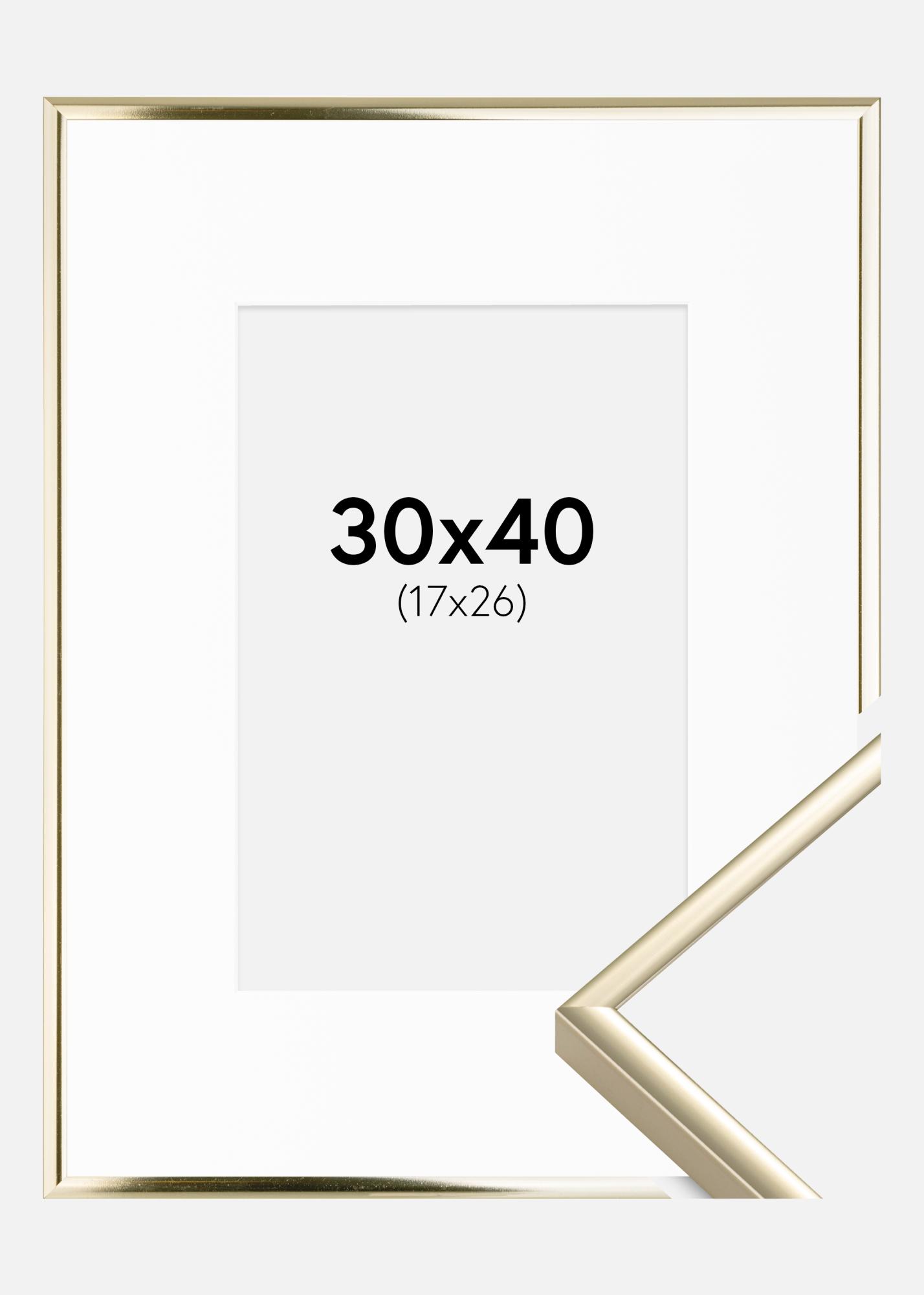 Ramme Aluminium Blank Gull 30x40 cm - Passepartout Hvit 18x27 cm