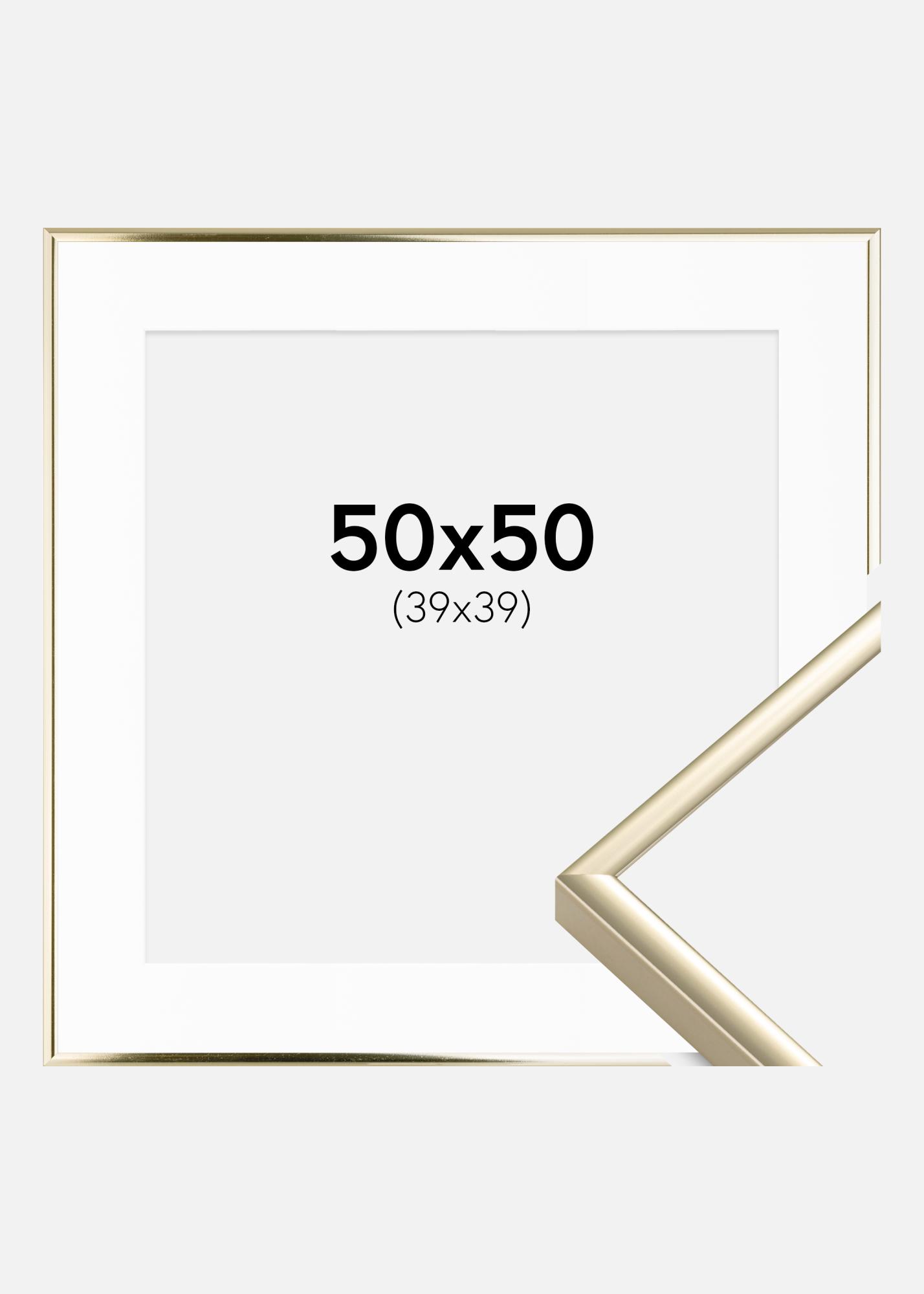 Ramme Aluminium Blank Gull 50x50 cm - Passepartout Hvit 40x40 cm