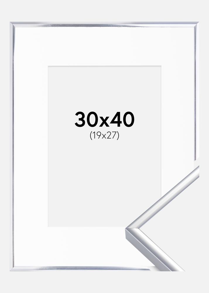 Ramme Aluminium Blank Sølv 30x40 cm - Passepartout Hvit 20x28 cm