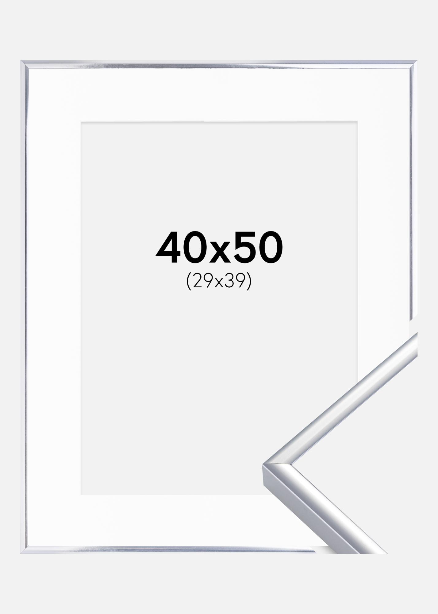 Ramme Aluminium Blank Sølv 40x50 cm - Passepartout Hvit 30x40 cm