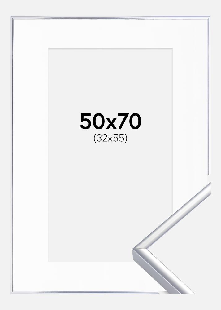 Ramme Aluminium Blank Sølv 50x70 cm - Passepartout Hvit 33x56 cm