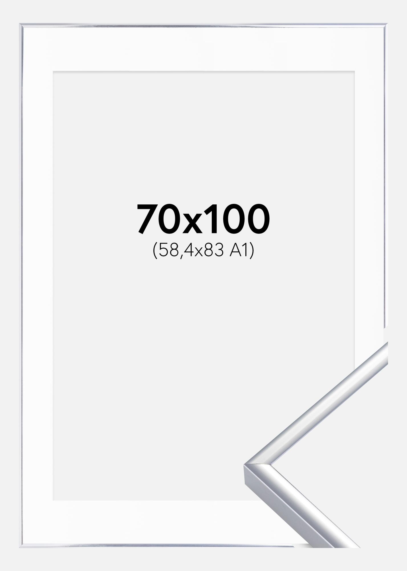 Ramme Aluminium Blank Sølv 70x100 cm - Passepartout Hvit 59,4x84 cm (A1)