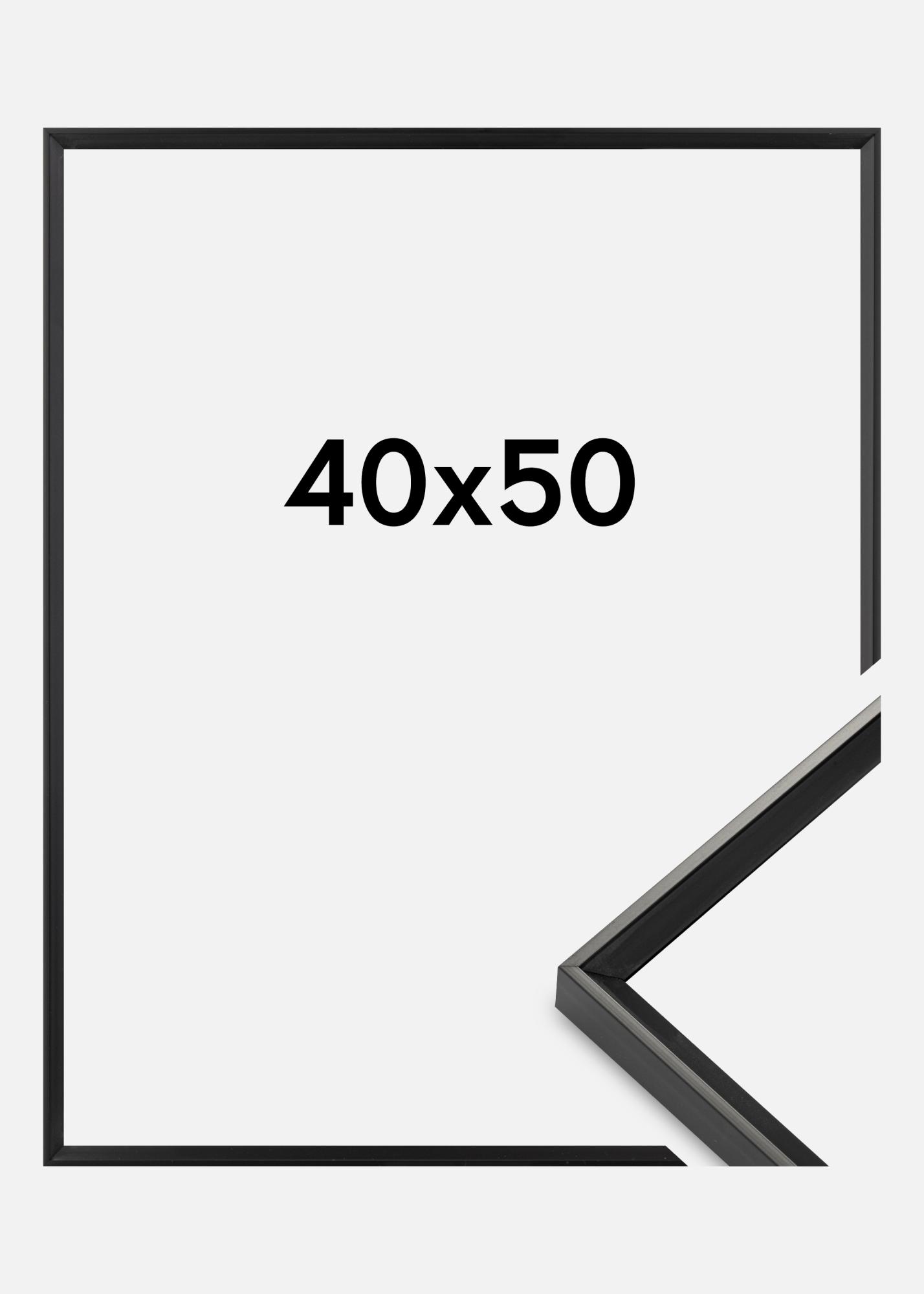 Dette er en svart bilderamme i moderne design med en stilig og matt rammelist som måler kun 10 mm i bredden. Rammelisten har i tillegg en kant med 45-graders vinkel som lener seg mot motivet og gir bildet ditt en trendy og elegant innramming. Den effektfulle innrammingen forsterkes ytterligere av listens dybde på 18 mm, som i tillegg gir rammen en solid følelse.