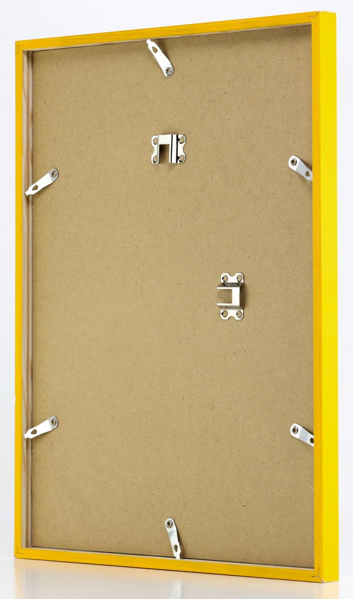 Dette er en ramme som går i en fin gul nyanse. Rammen er en svenskprodusert treramme med akrylglass, som er en form for plast som minner om glass men ikke er like skjørt. Rammen måler 12 mm i bredde og 20 mm i dybde. En fargerik ramme kan virkelig skape en glad og herlig atmosfære i hjemmet ditt, og løfter hvilket som helst motiv. Kanskje du vil tilføre litt mer liv til en svart-hvit poster eller elegant ramme inn en personlig poster med tekst? Da er en fargerik gul ramme perfekt! På baksiden av rammen sitter veggfester for stående og liggende oppheng. Rammen E-Line finnes i ulike farger og størrelser, hvorav denne måler 30x40 cm.