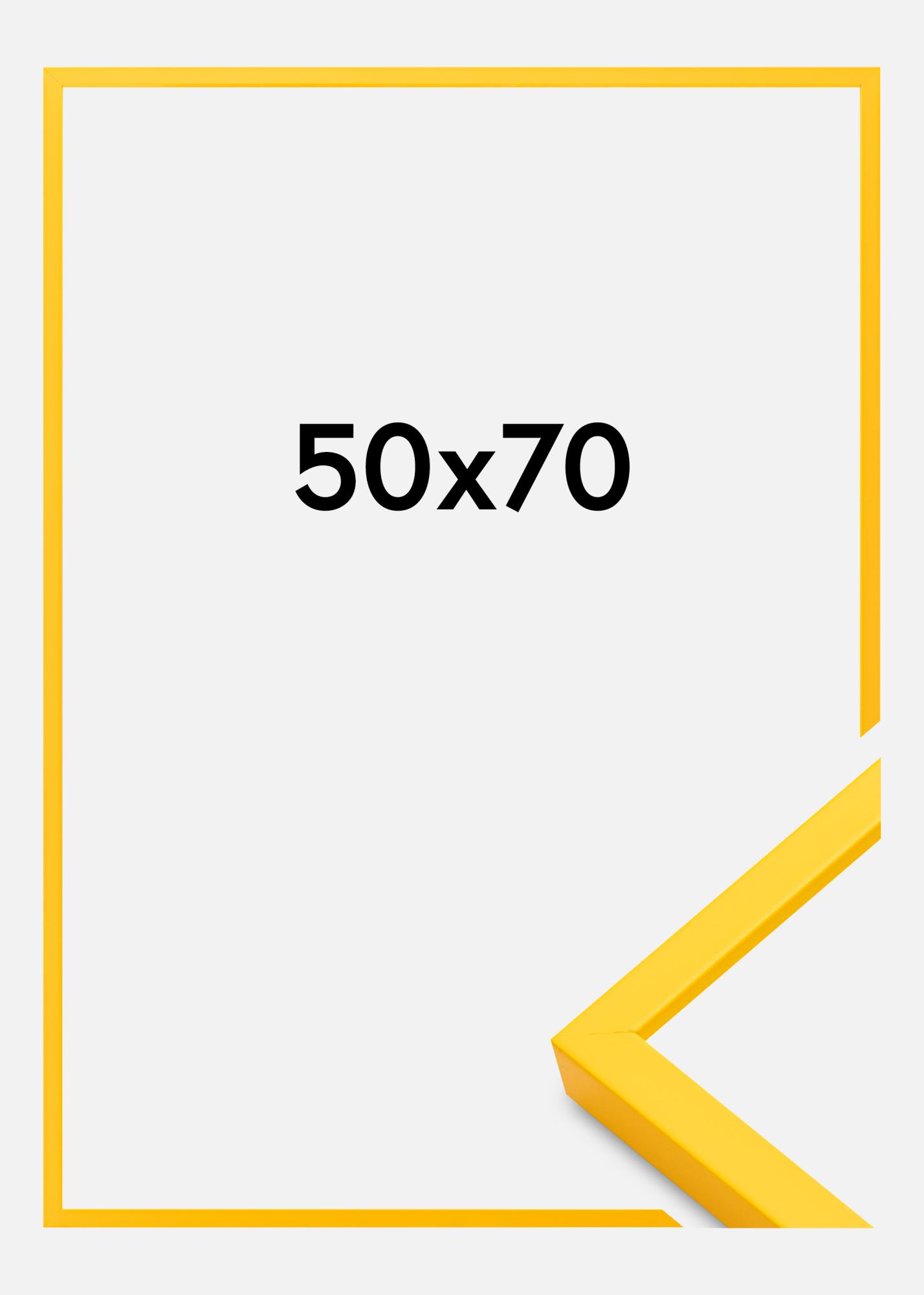 Dette er en ramme som går i en fin gul nyanse. Rammen er en svenskprodusert treramme med akrylglass, som er en form for plast som minner om glass men ikke er like skjørt. Rammen måler 12 mm i bredde og 20 mm i dybde. En fargerik ramme kan virkelig skape en glad og herlig atmosfære i hjemmet ditt, og løfter hvilket som helst motiv. Kanskje du ønsker å tilføre litt mer liv til en svart-hvit poster eller elegant ramme inn en personlig poster med tekst? Da er en fargerik gul ramme perfekt! På baksiden av rammen er det veggfester for vertikal og horisontal opphenging. Rammen E-Line finnes i ulike farger og størrelser, hvorav denne måler 50x70 cm.