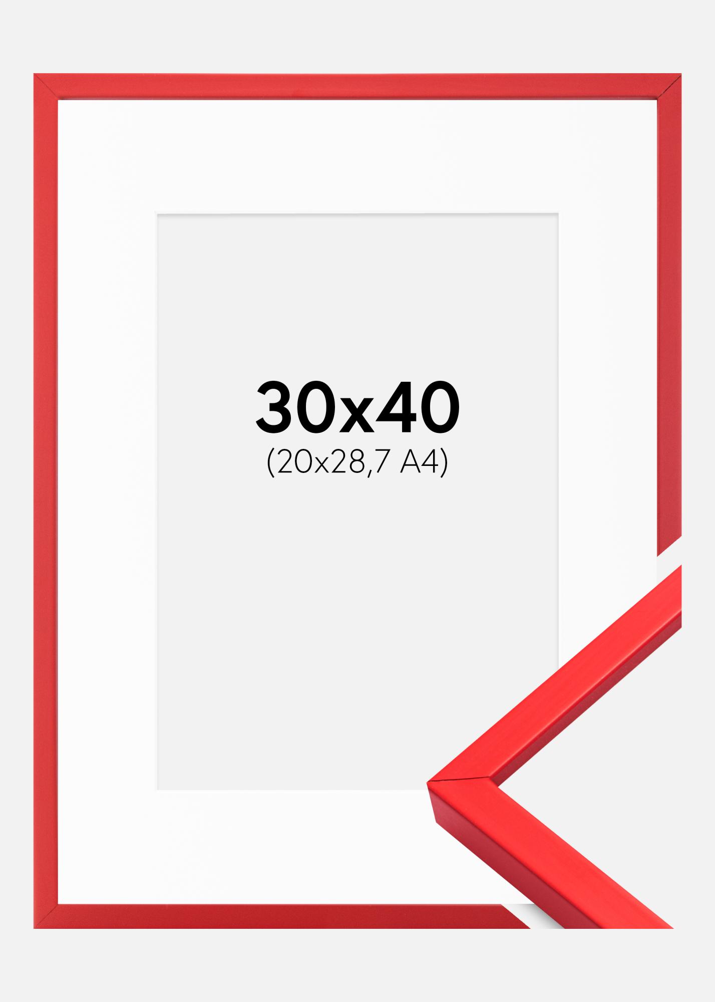 Ramme E-Line Rød 30x40 cm - Passepartout Hvit 21x29,7 cm (A4)