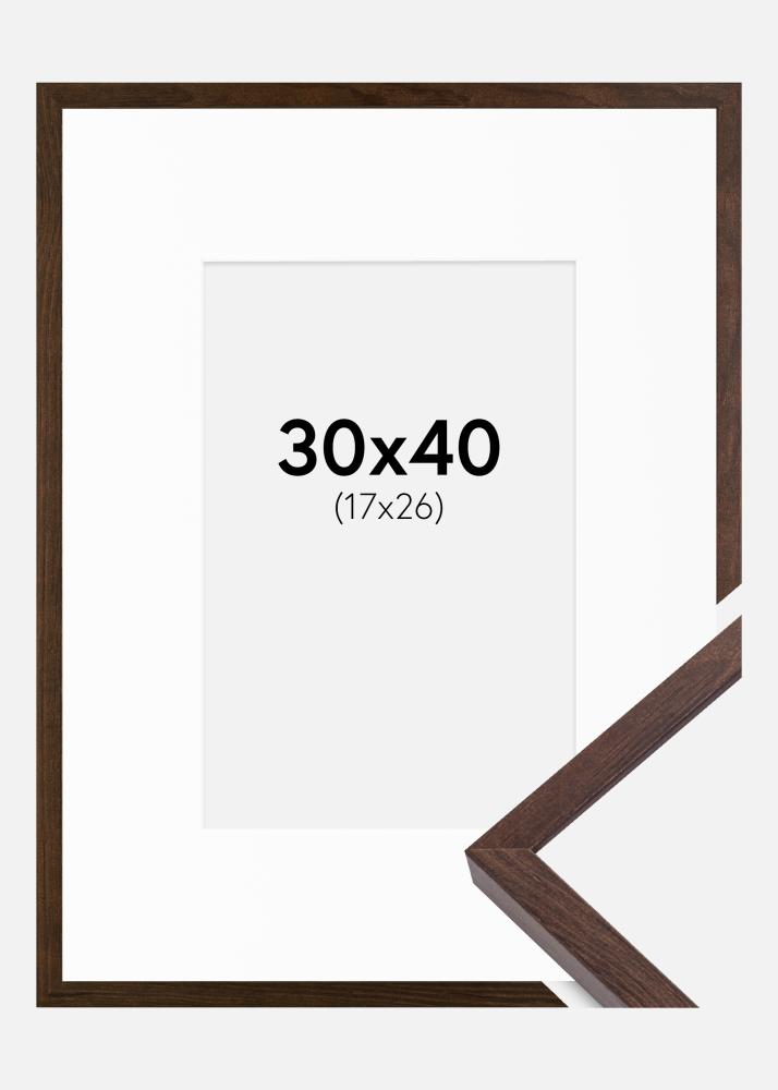 Ramme E-Line Valnøtt 30x40 cm - Passepartout Hvit 18x27 cm