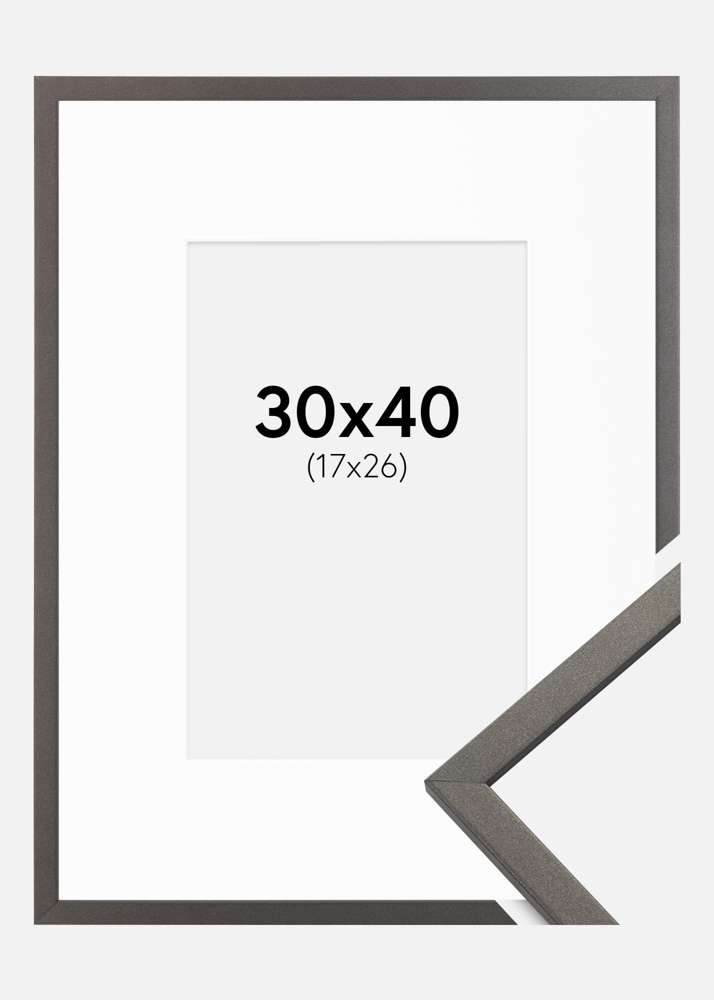 Ramme Edsbyn Grafitt 30x40 cm - Passepartout Hvit 18x27 cm