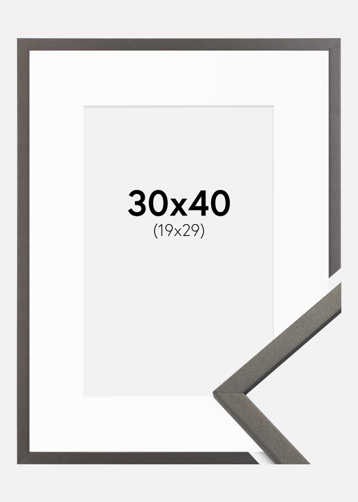 Ramme Edsbyn Grafitt 30x40 cm - Passepartout Hvit 20x30 cm