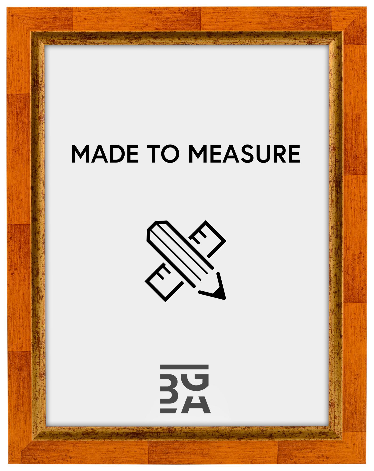 Sett stil på veggen samtidig som du fremhever dine fineste bilder! Denne elegante rammen har et symmetrisk mønster og et parti med slitte detaljer nærmest glasset.Ettersom rammen lages etter dine mål kan du være sikker på at den passer til ditt bilde.