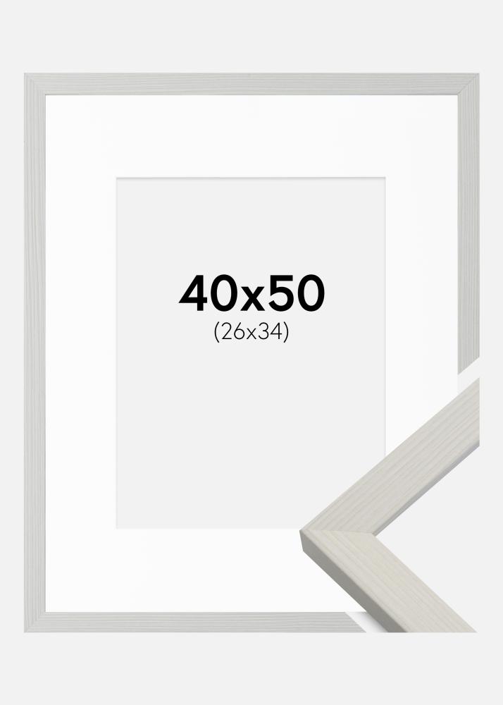 Ramme Fiorito Hvit 40x50 cm - Passepartout Hvit 27x35 cm