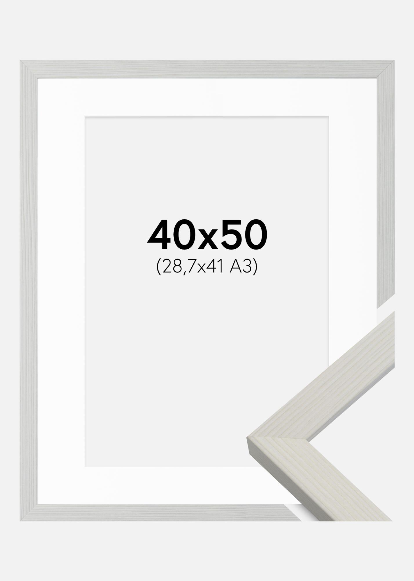 Ramme Fiorito Hvit 40x50 cm - Passepartout Hvit 29,7x42 cm (A3)