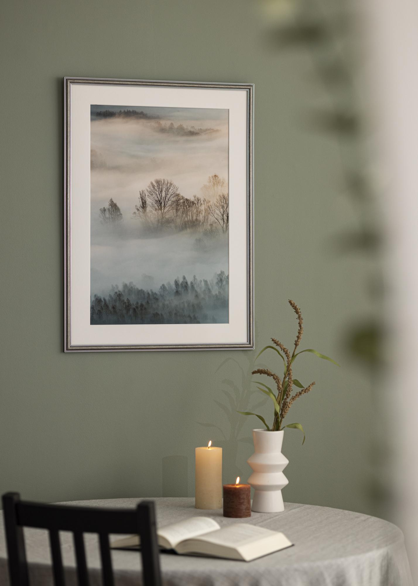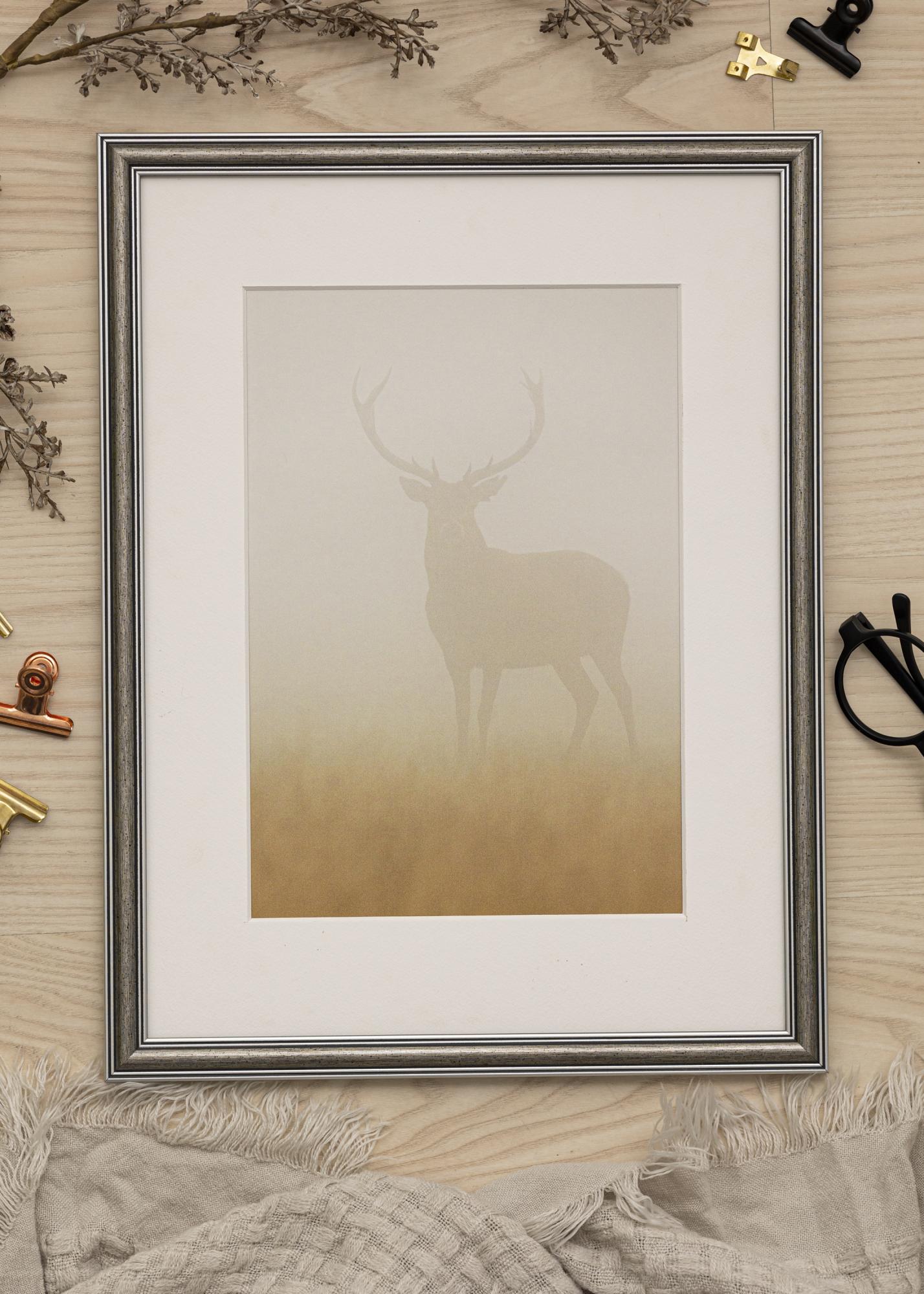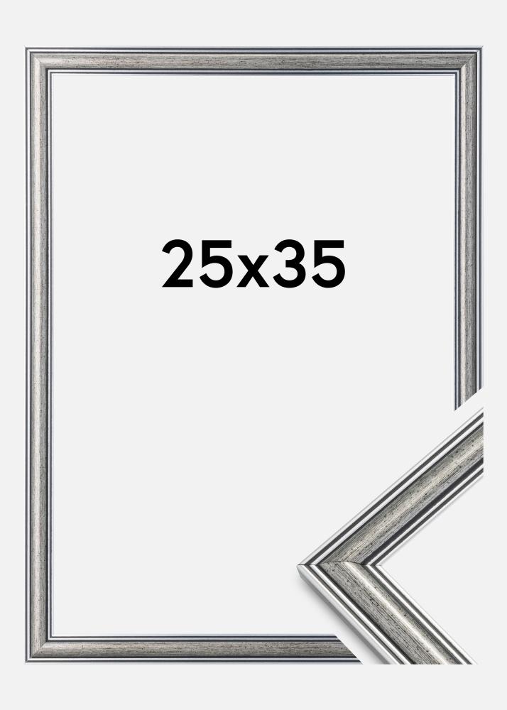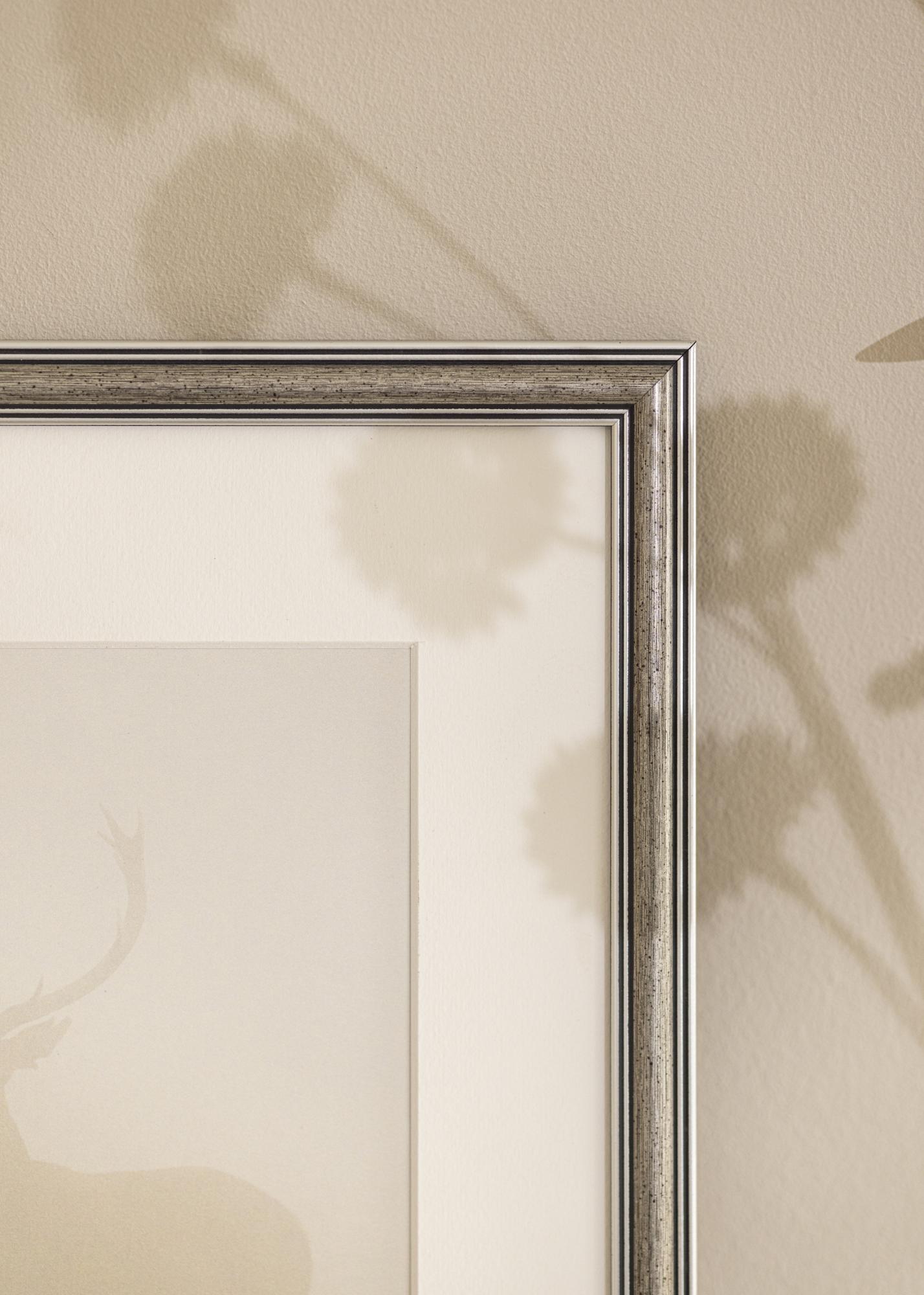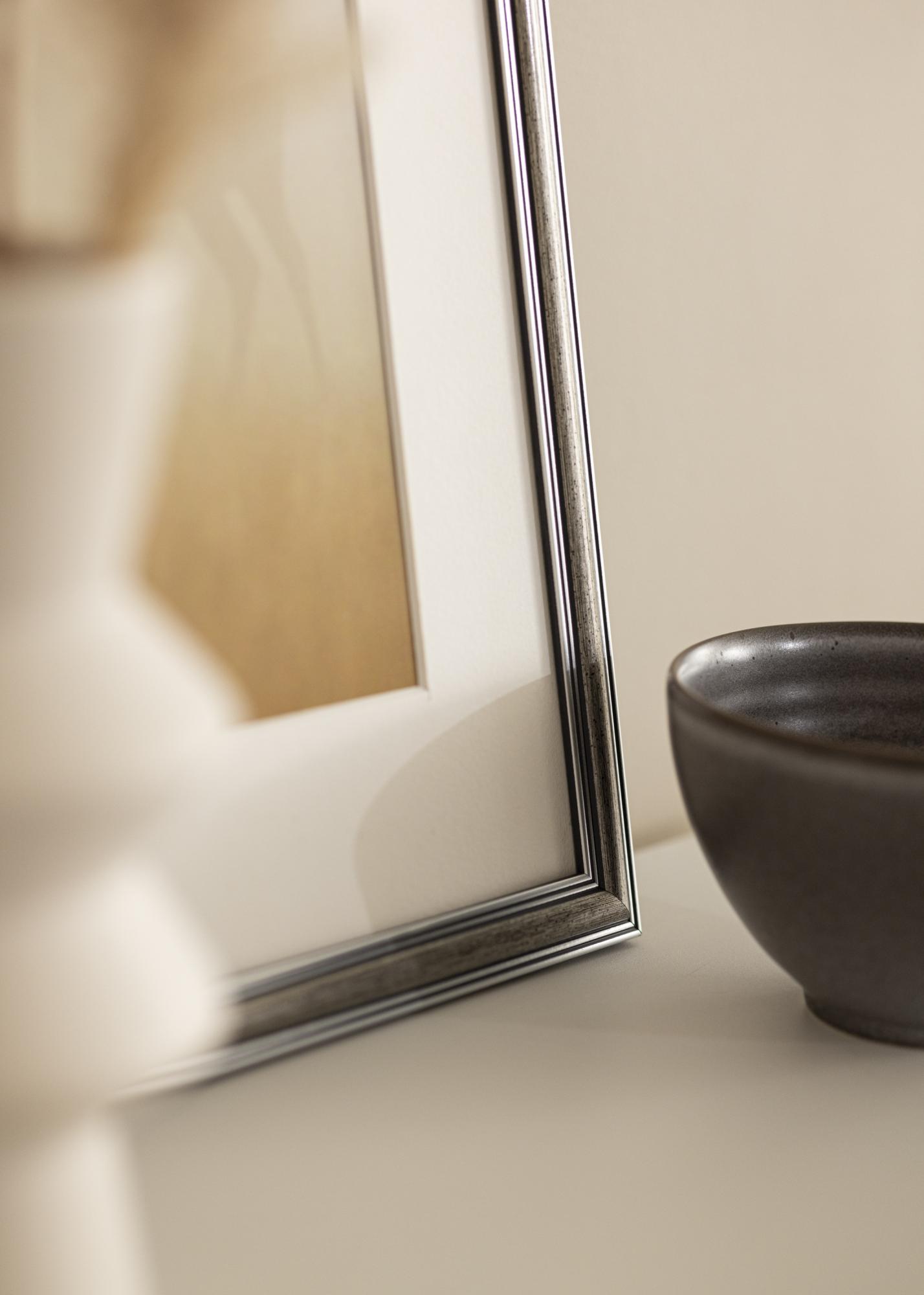 Frigg er en sølvramme med svarte linjer og svartspettede innslag. Passer utmerket når du ser etter en bred og tradisjonell sølvramme som passer til mange typer bilder og miljøer.
