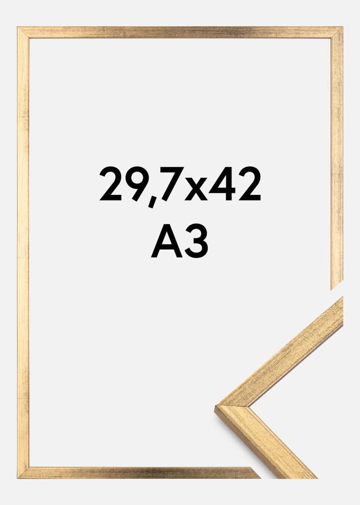 Stilig treramme med en rett profil som har en herlig vintagefølelse og en overflate med slitt gullfarge og svartspettede elementer. Med sin myke og gylne profil er Galant Gull rammen som passer for nesten alle typer bilder.