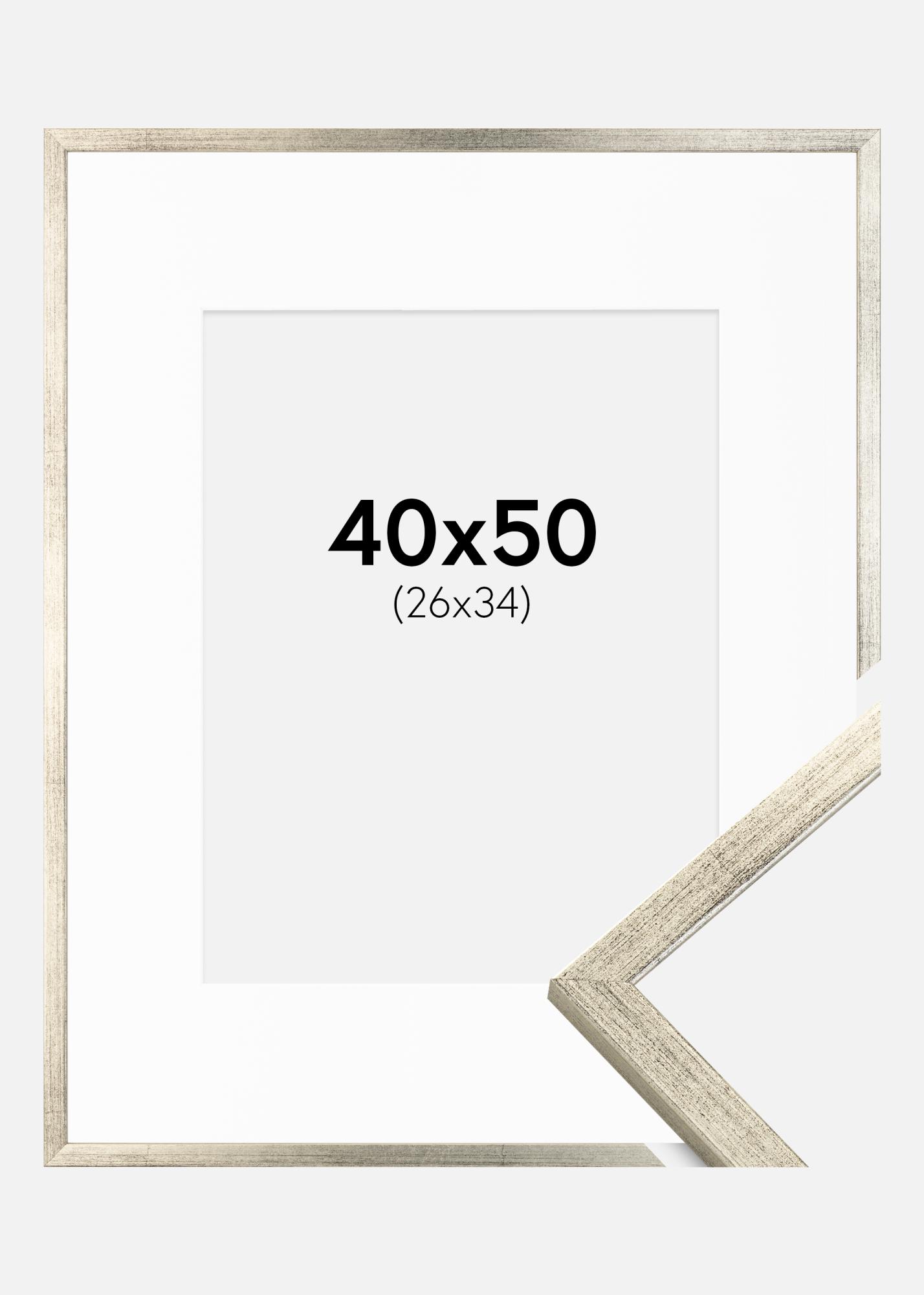 Ramme Galant Sølv 40x50 cm - Passepartout Hvit 27x35 cm