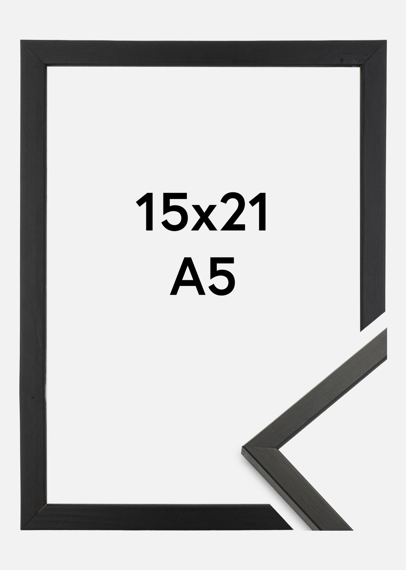 Klassisk svart bilderamme i mørk svart tre som passer til et motiv som er 15x21 cm. Svarte rammer er en klassiker som passer til alle typer motiv og den er enkel å kombinere med andre farger. Rammen har ekte glass, noe vi på BGA setter pris på når det gjengir bildet godt.