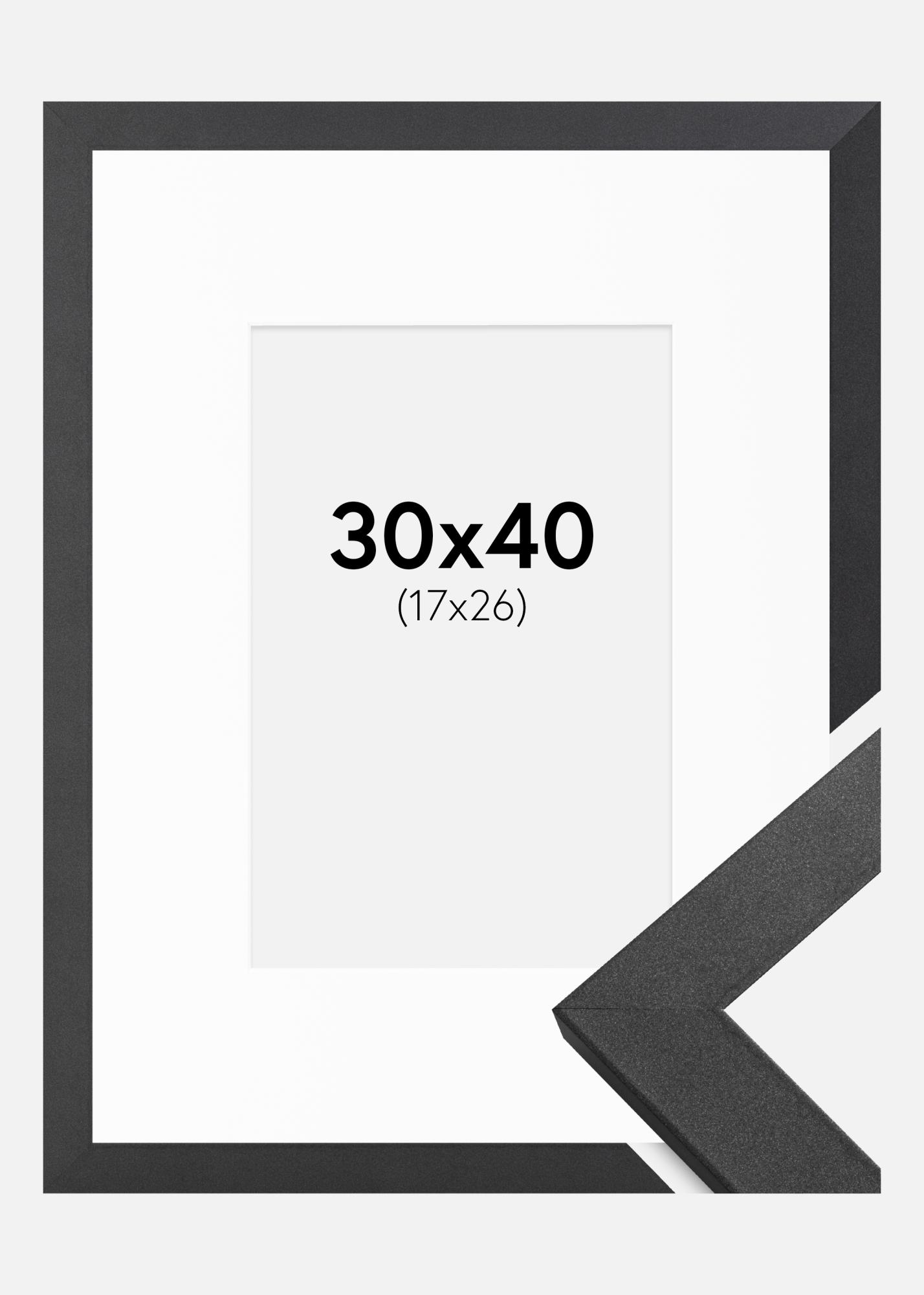 Ramme Graphite Wood 30x40 cm - Passepartout Hvit 18x27 cm