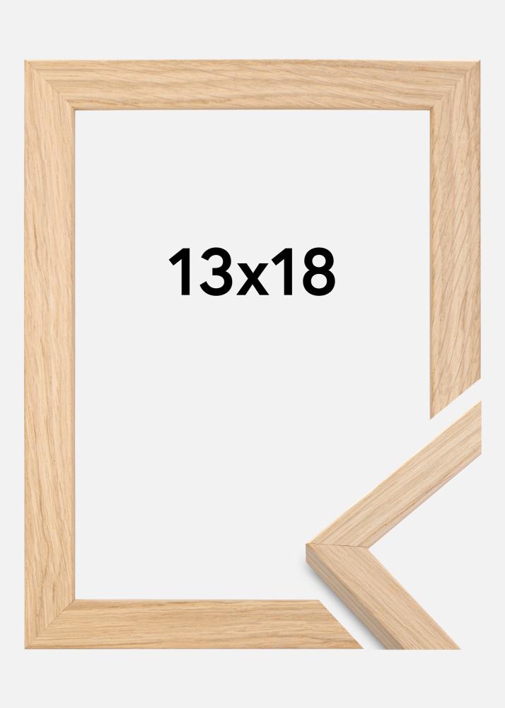 Grimsåker Ramme Eik 22A 13x18 cm har innermålene 13x18 cm mens listen er 1,7x2,25 cm.