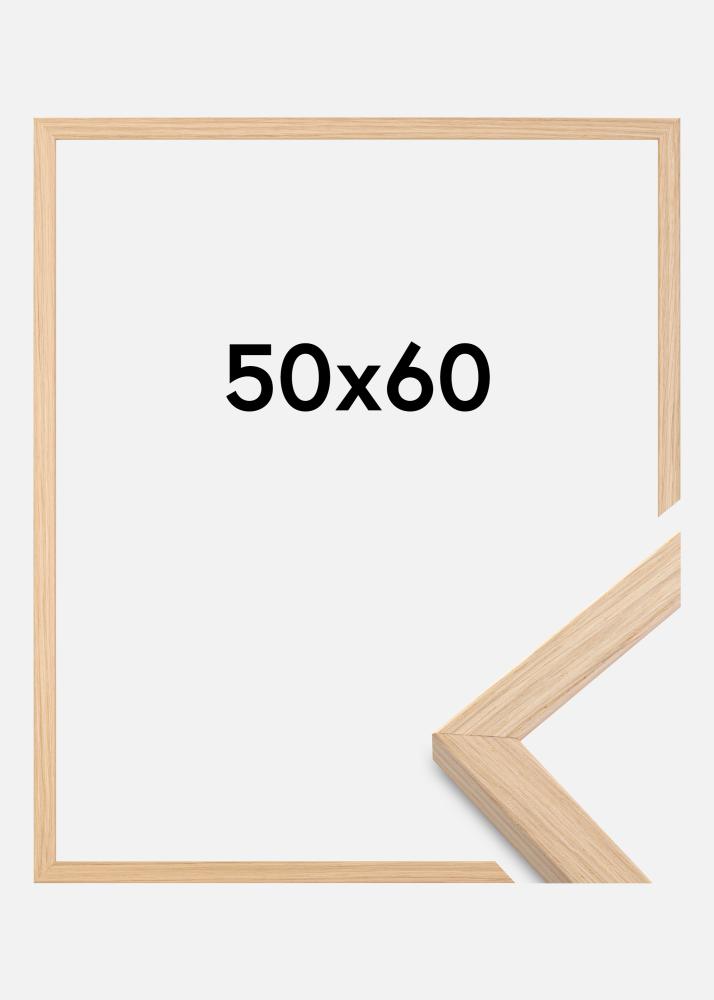 Grimsåker Ramme Eik 22A 50x60 cm har innermålene 50x60 cm mens listen er 1,7x2,25 cm.