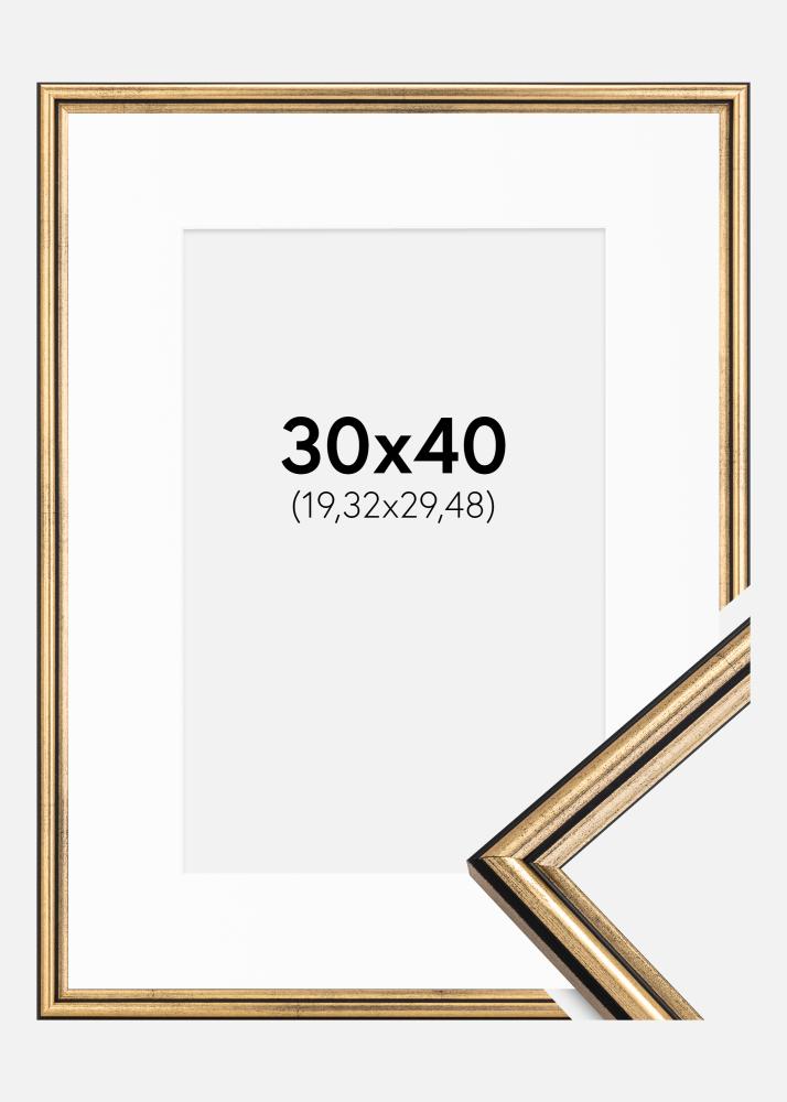 Ramme Horndal Gull 30x40 cm - Passepartout Hvit 8x12 inches