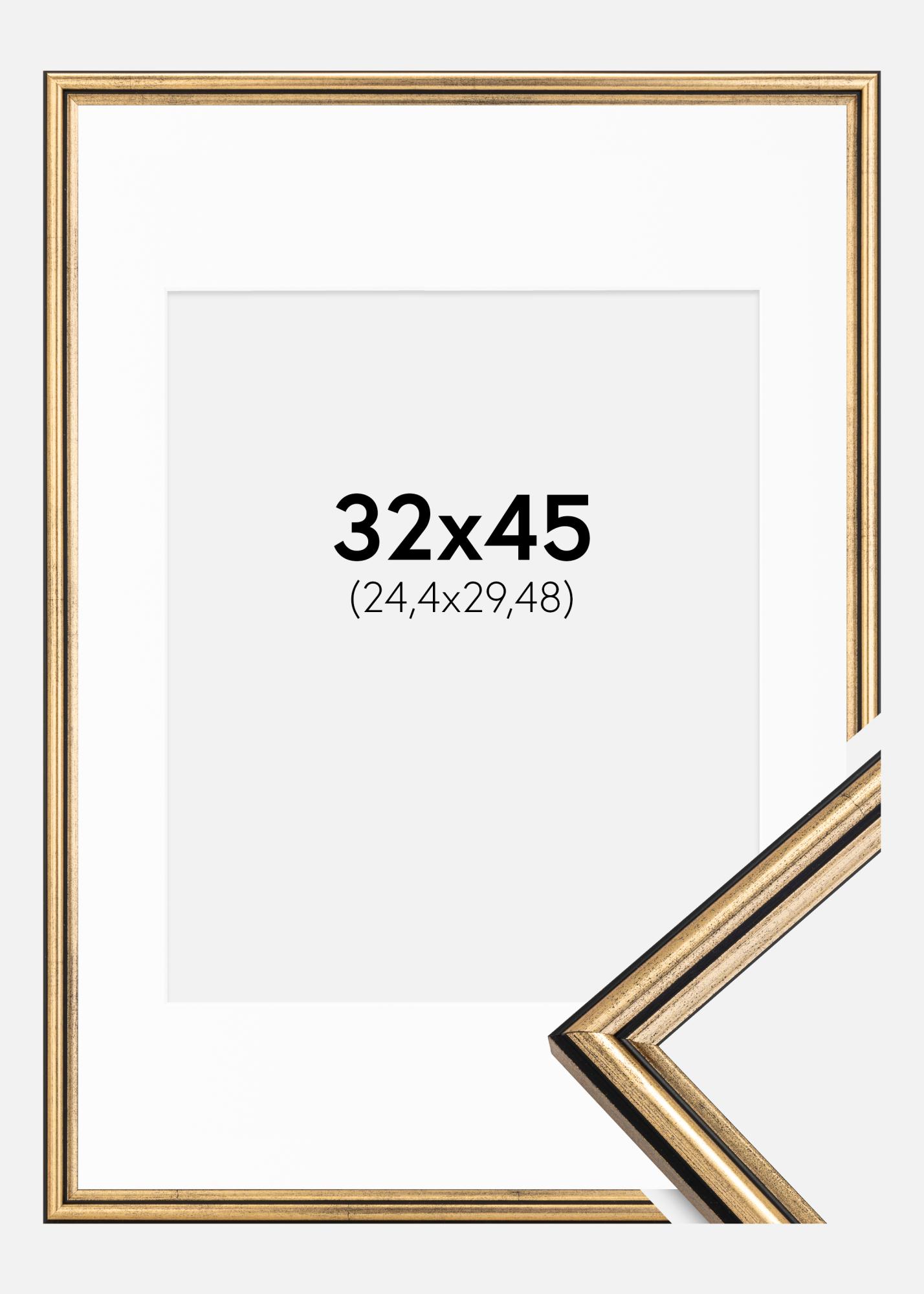 Ramme Horndal Gull 32x45 cm - Passepartout Hvit 10x12 inches